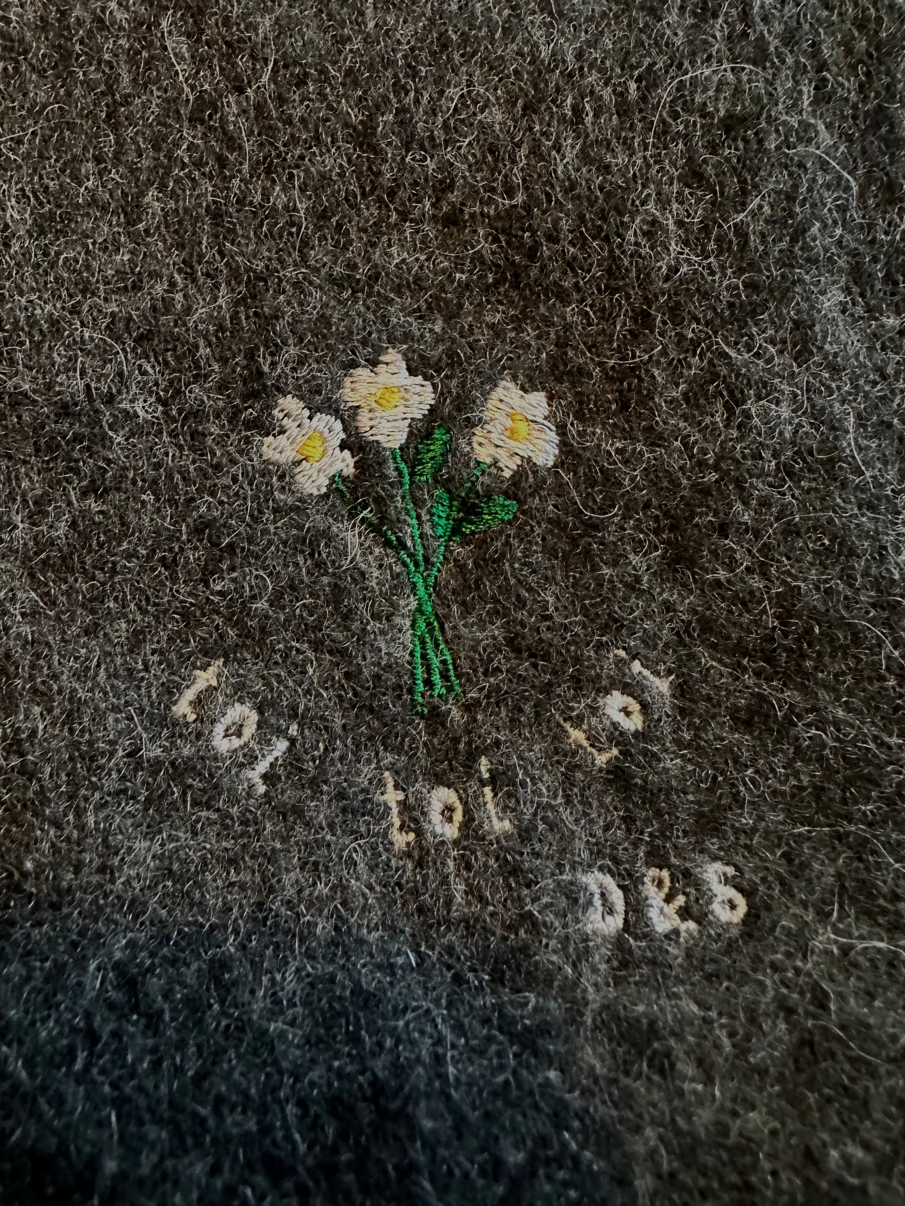Einzelauftrag Wollschal mit Personalisierung und Blumenmotiv