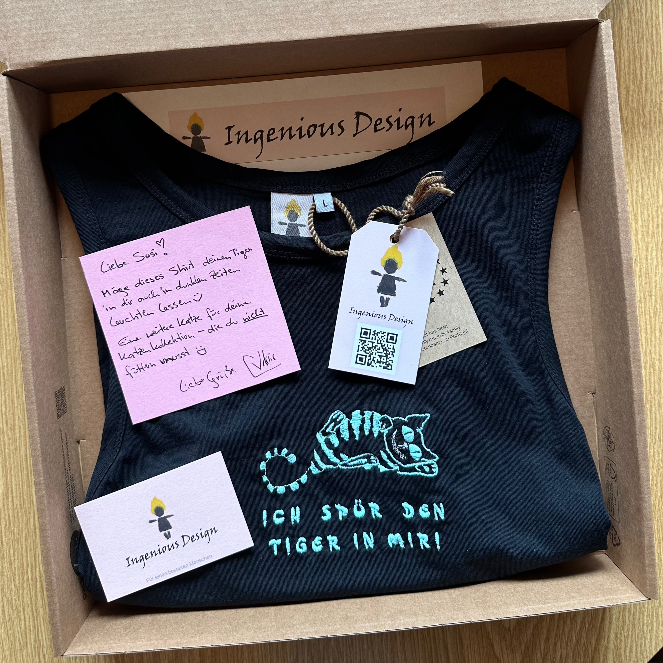 Einzelauftrag T-Shirt mit meinem Design "Grinsekatze" + personalisiertem Schriftzug