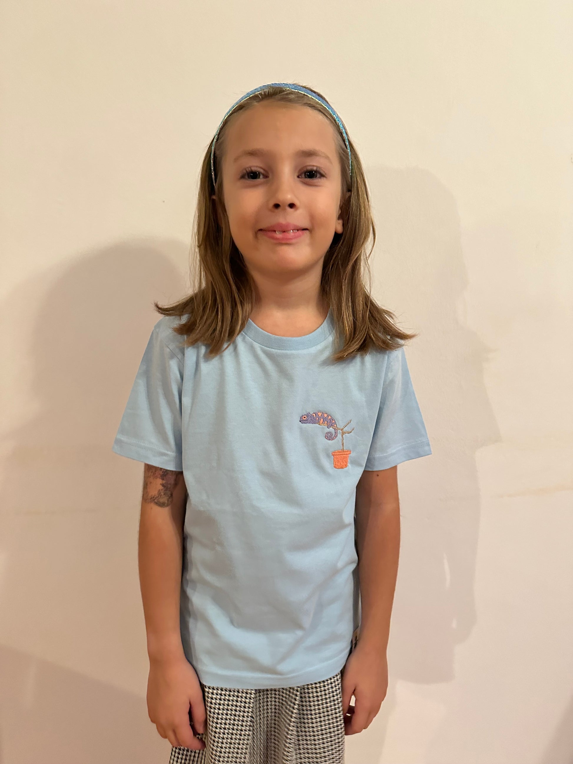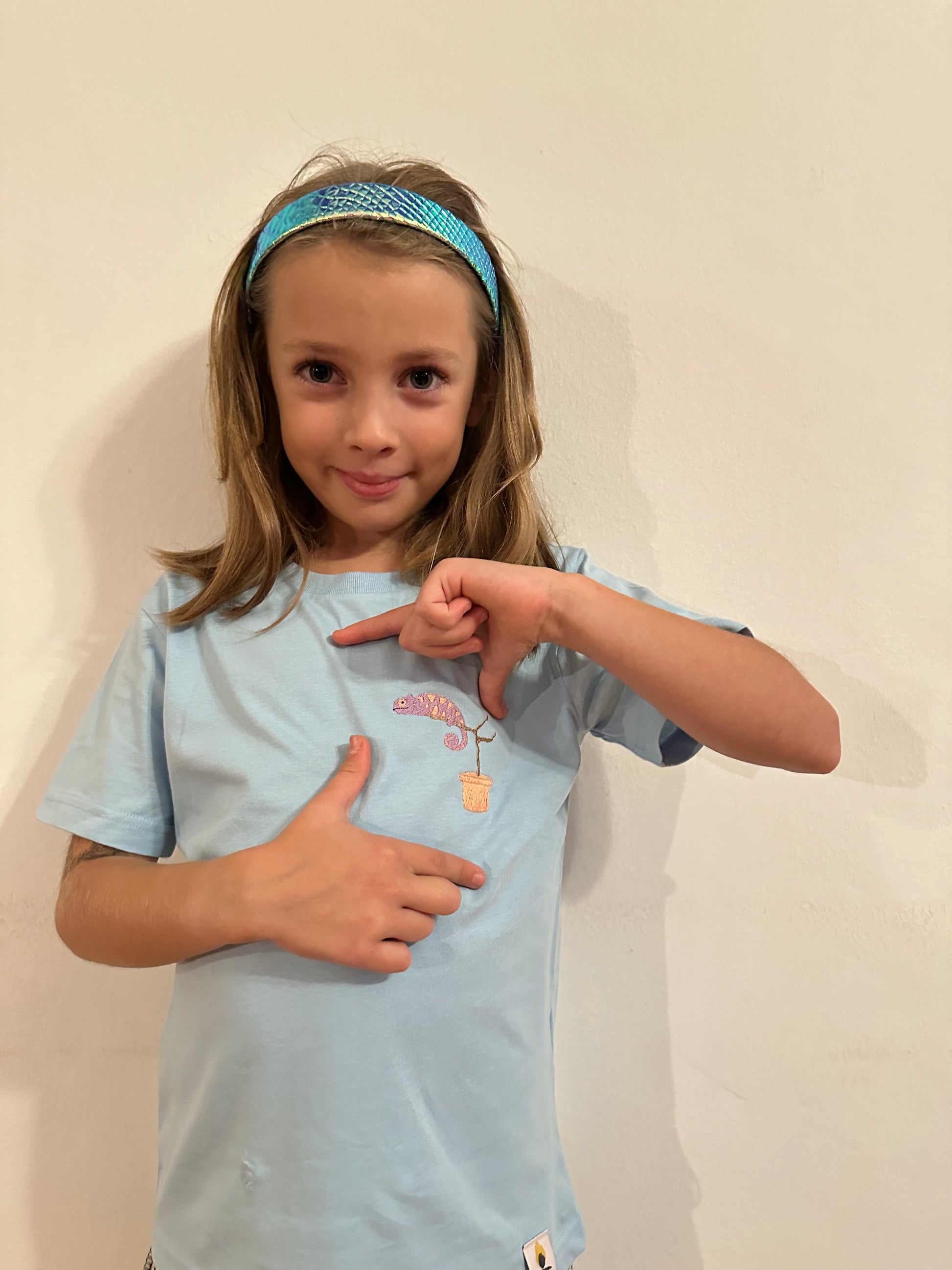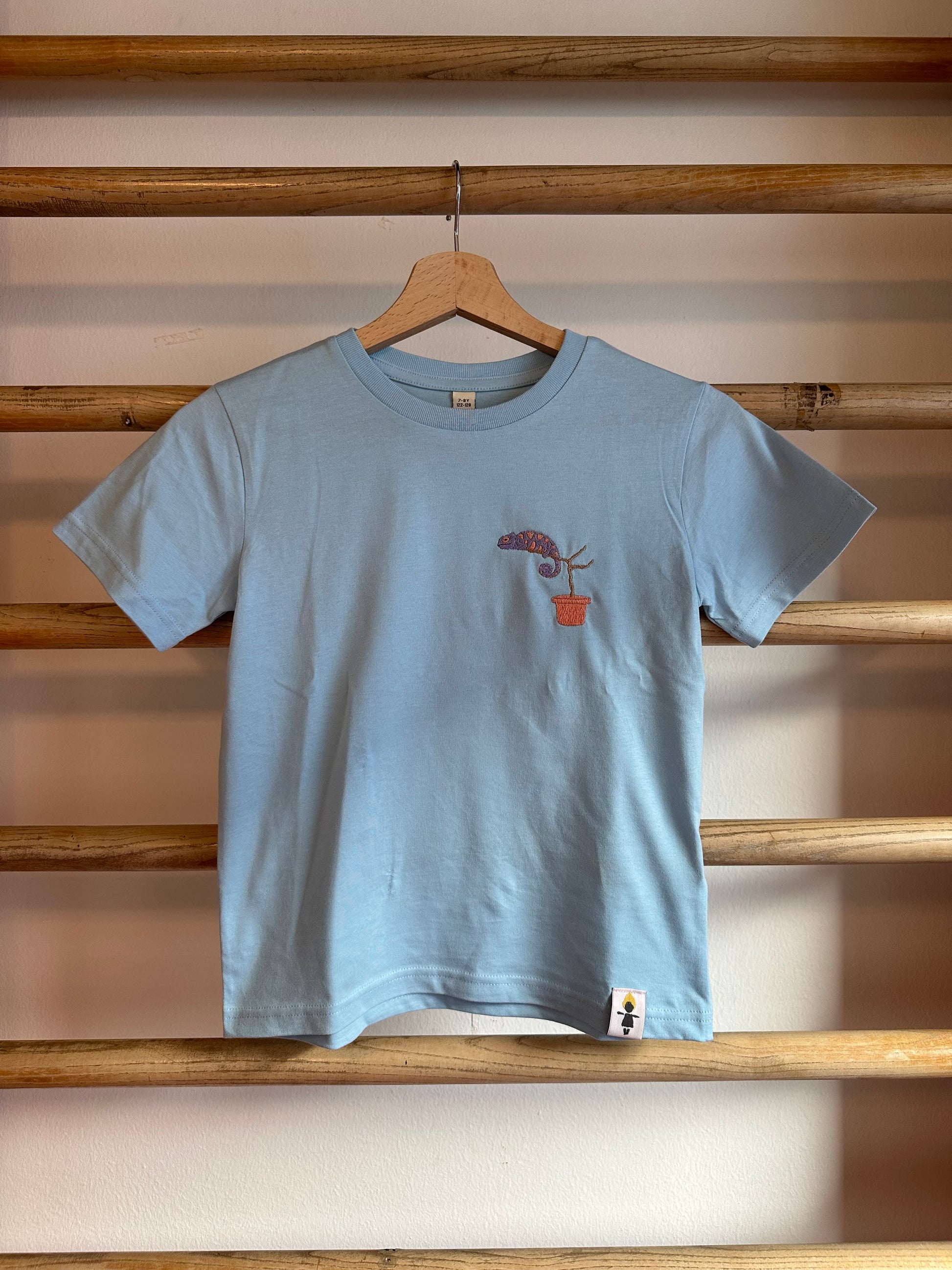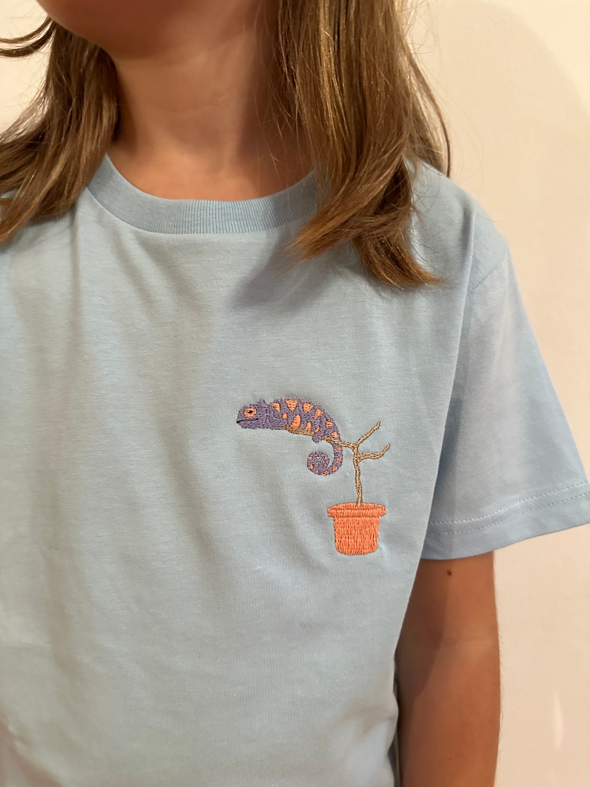 T-Shirt Unisex Bio-Baumwolle bestickt mit Chamäleon (farbwechselndes Garn, interaktives Shirt)
