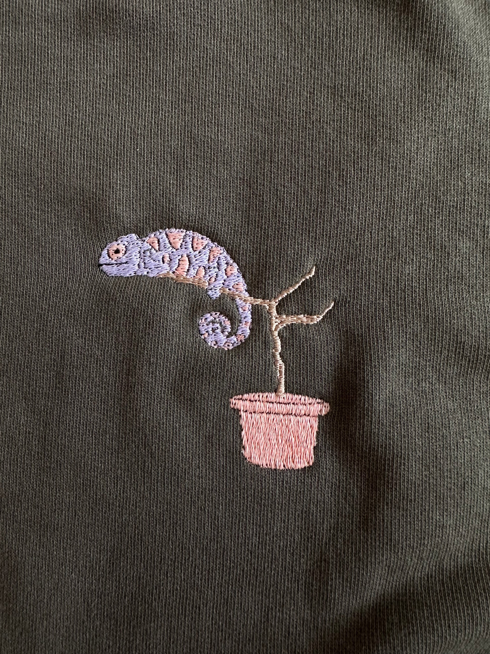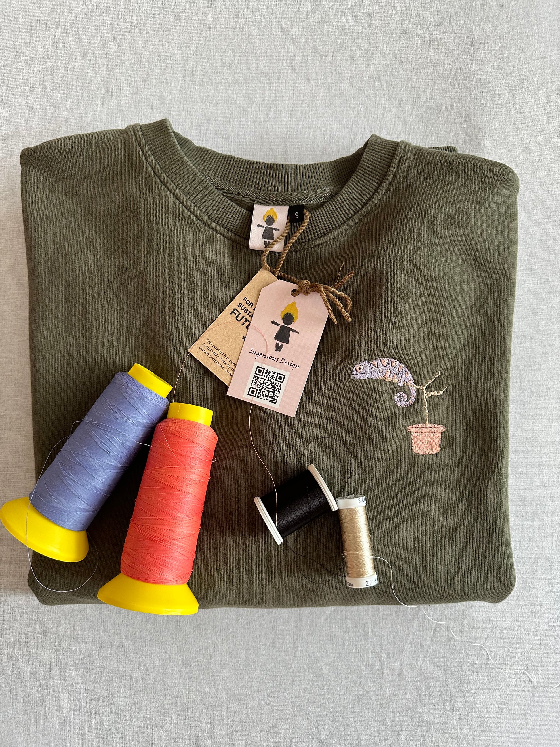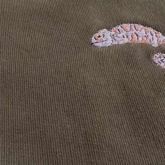 Pullover T-Shirt Unisex Bio-Baumwolle bestickt mit Chamäleon (farbwechselndes Garn, interaktives Shirt