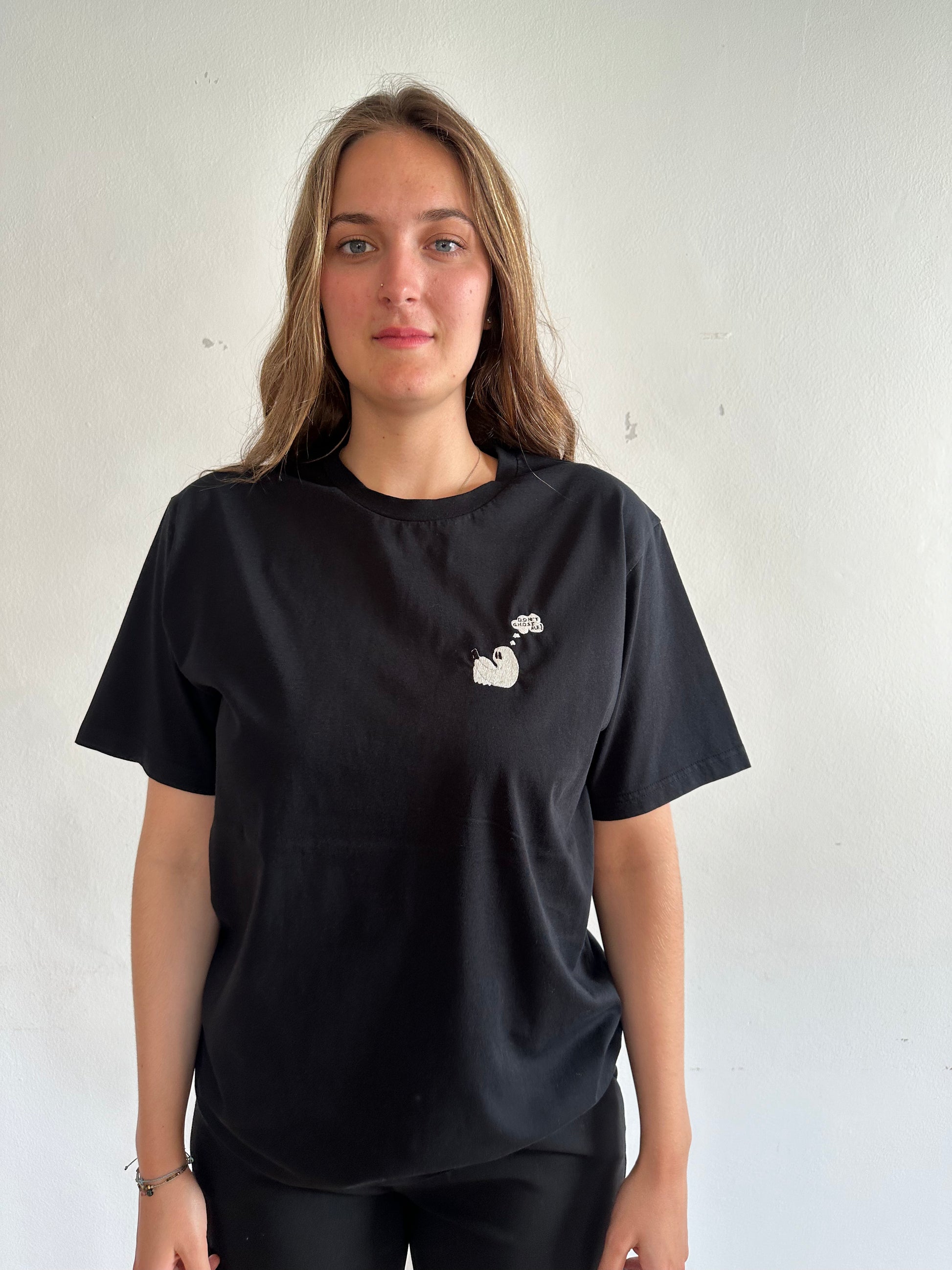 T-Shirt Unisex Bio-Baumwolle bestickt mit Don't ghost me! -Geist (Glow in the Dark)