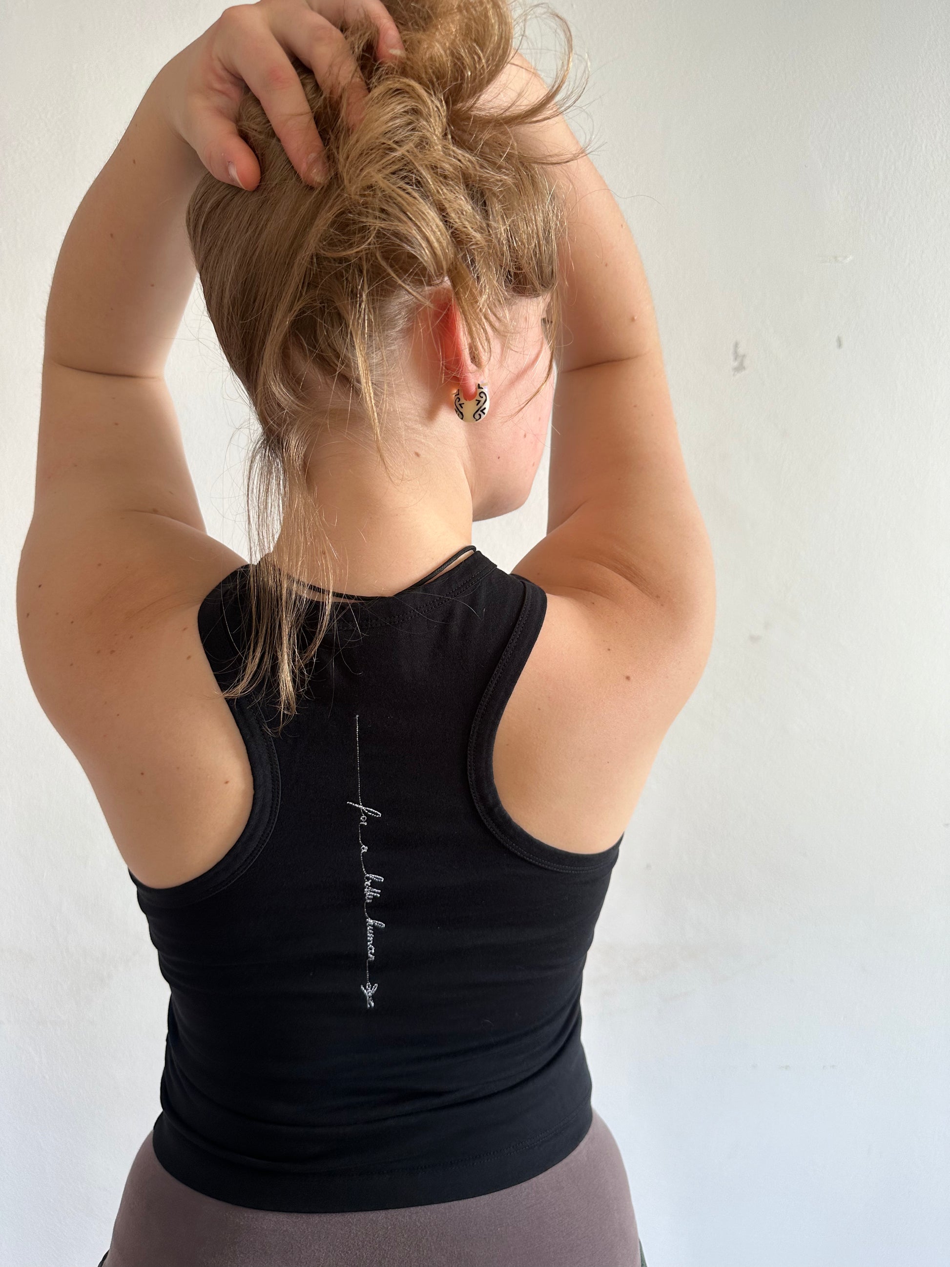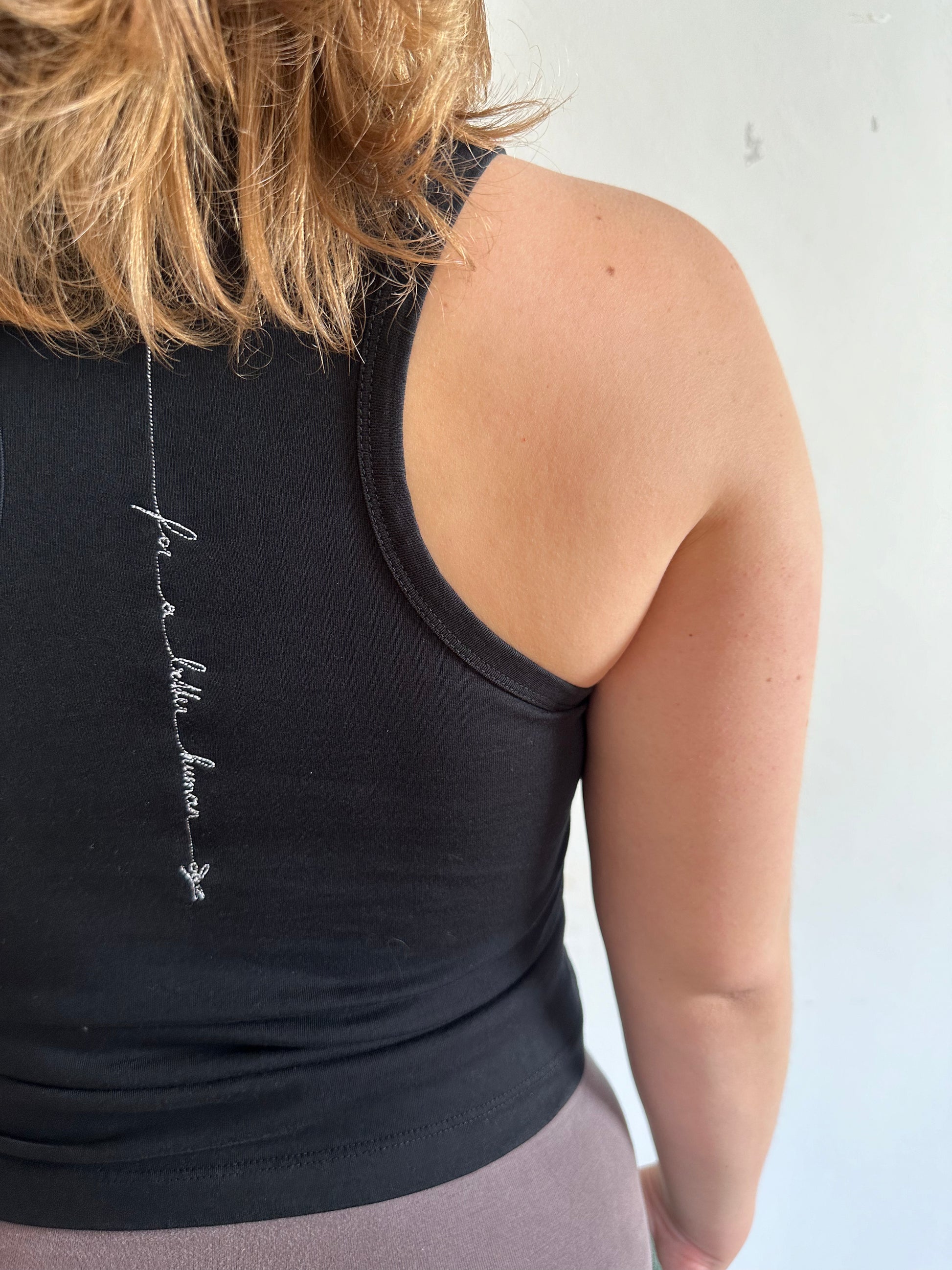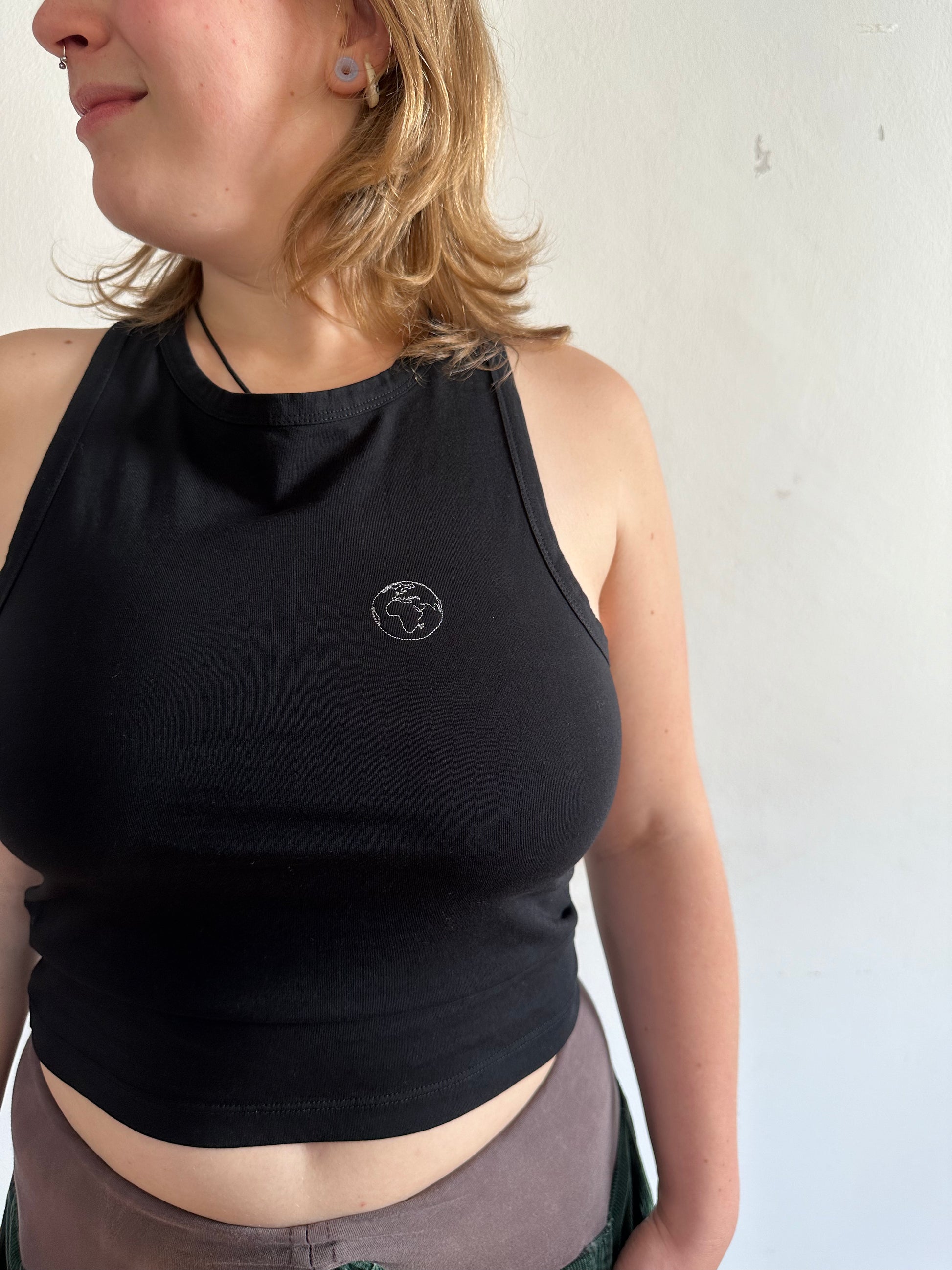 Crop-Top T-Shirt Bio-Baumwolle bestickt mit Earth - for a better human (Wirbelsäulenbild)