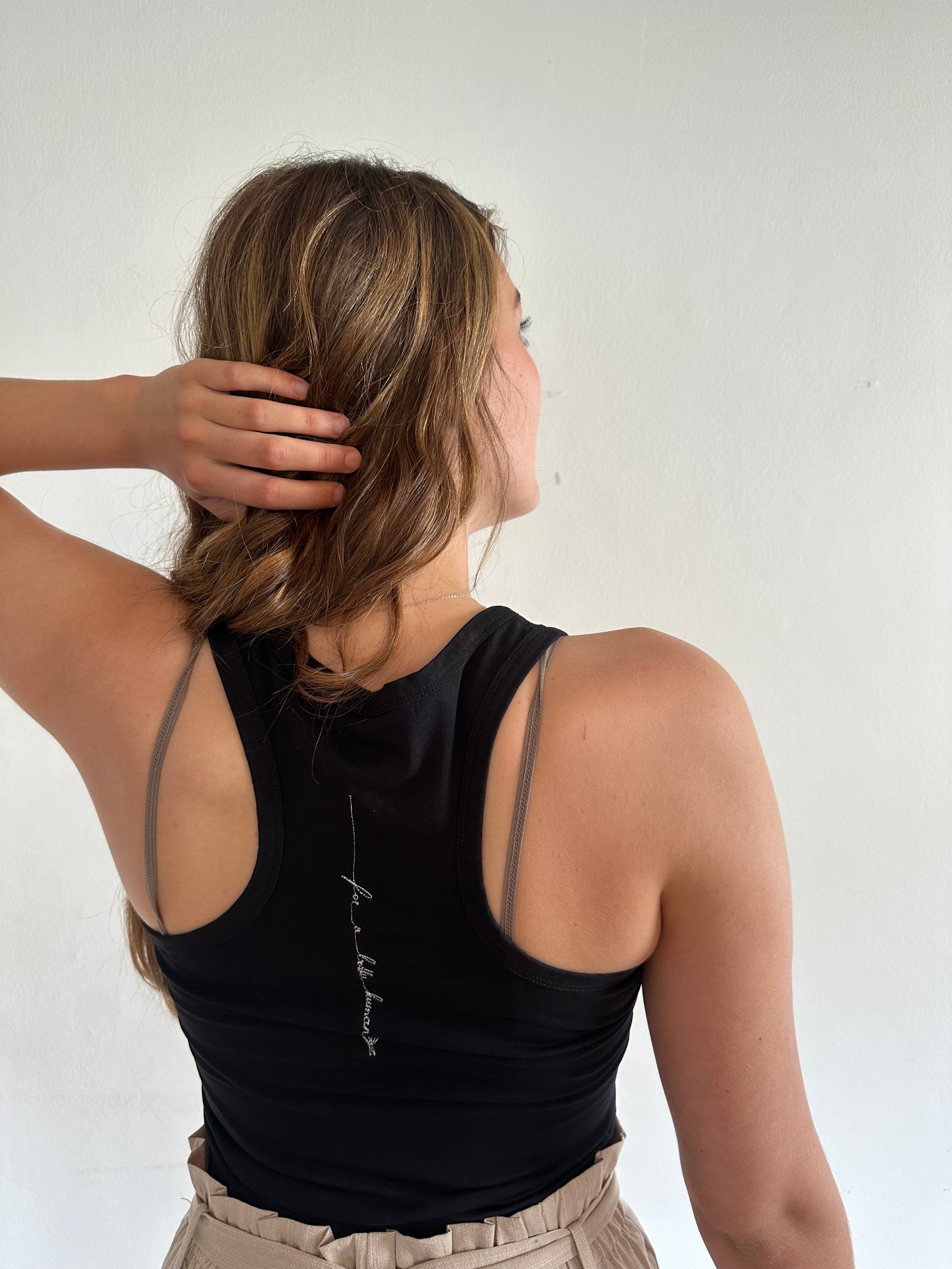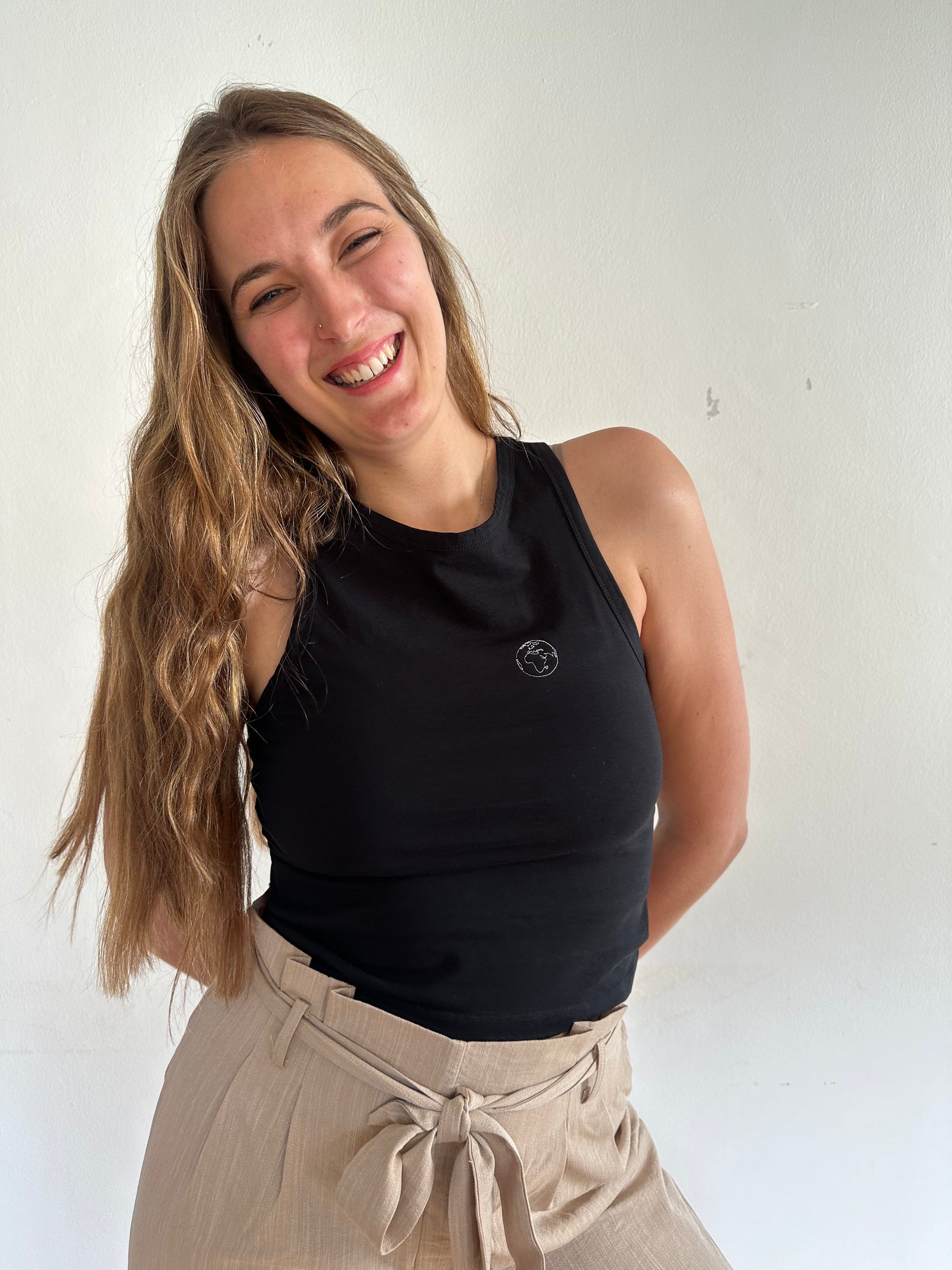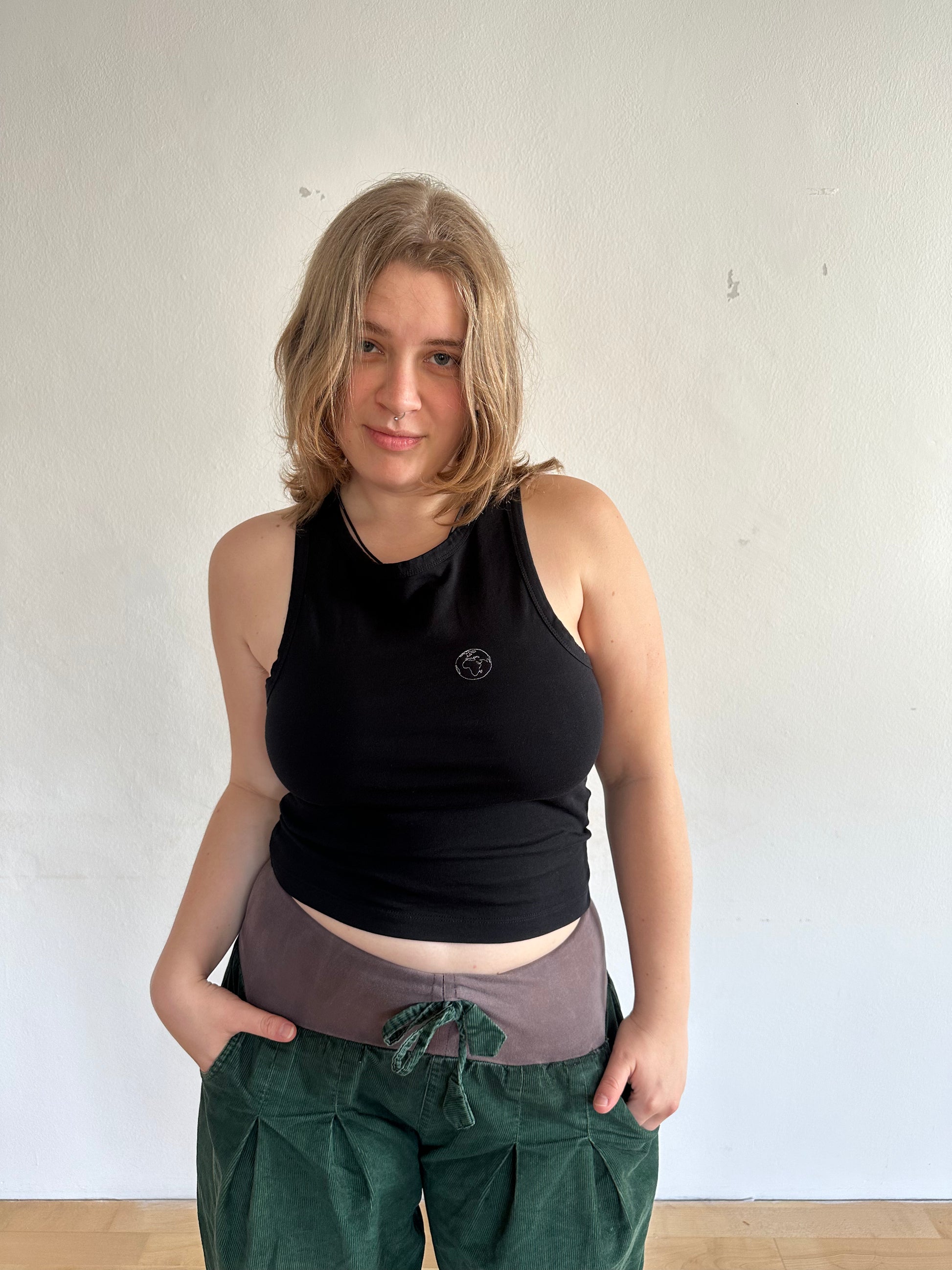 Crop-Top T-Shirt Bio-Baumwolle bestickt mit Earth - for a better human (Wirbelsäulenbild)