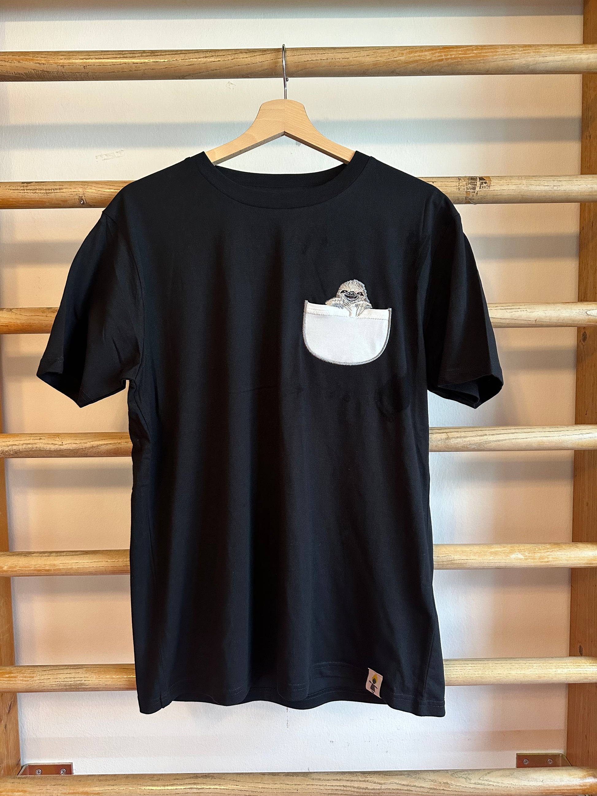 T-Shirt Unisex Bio-Baumwolle bestickt mit Faultier in der Brusttasche