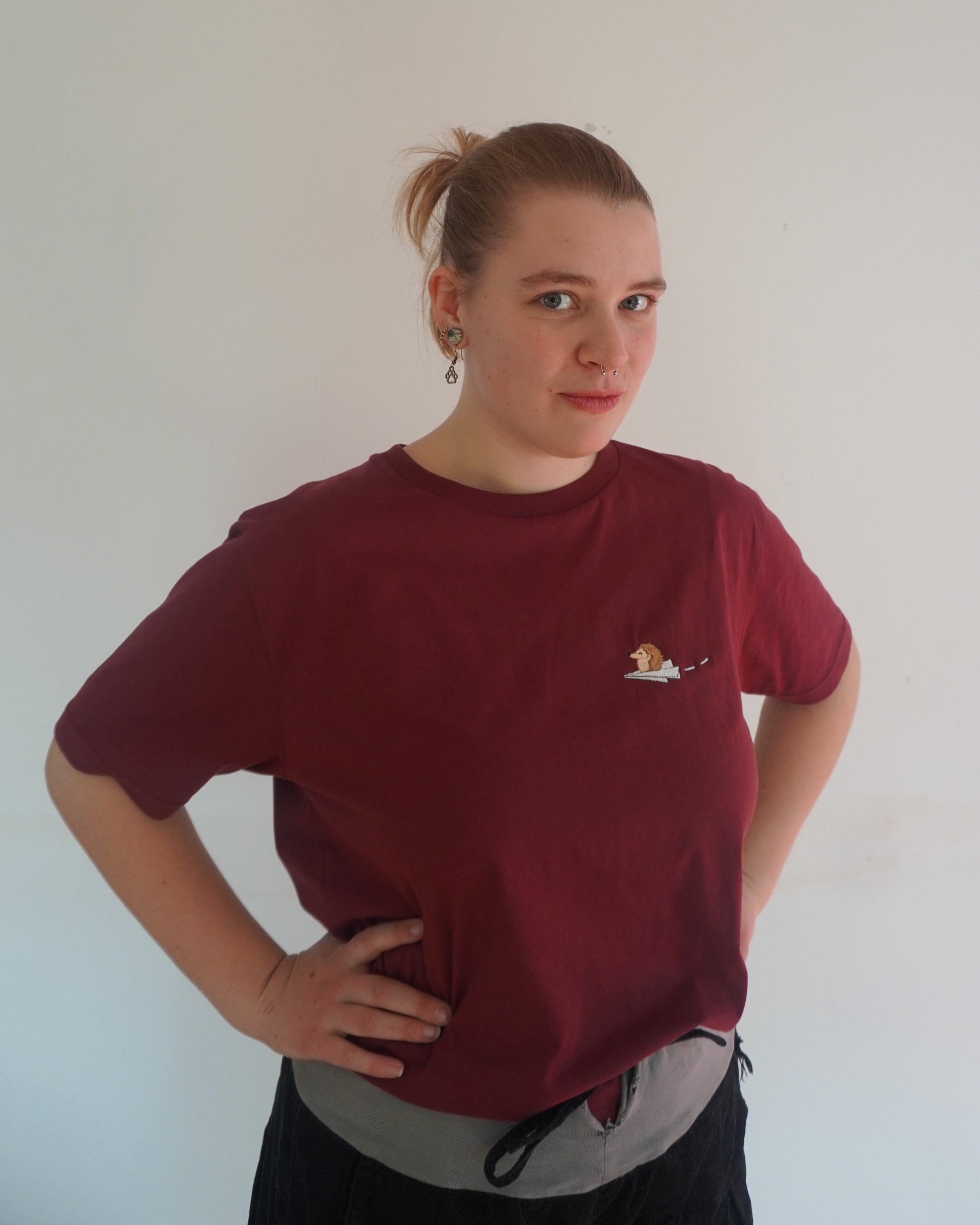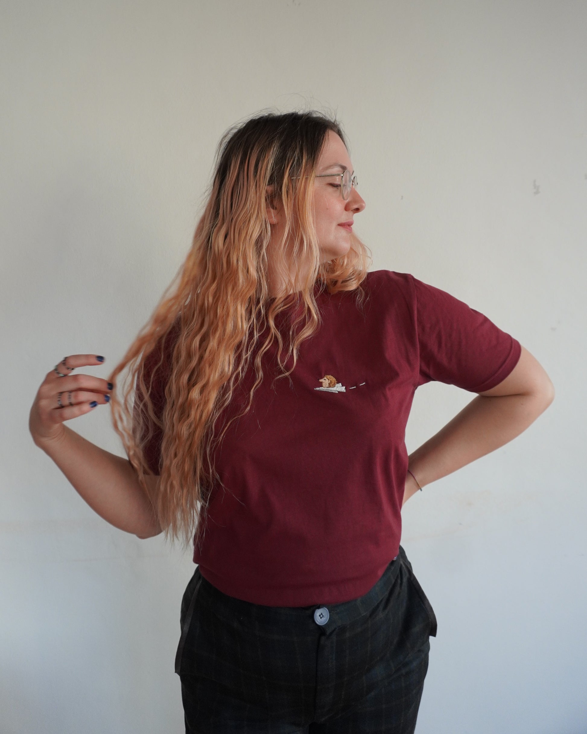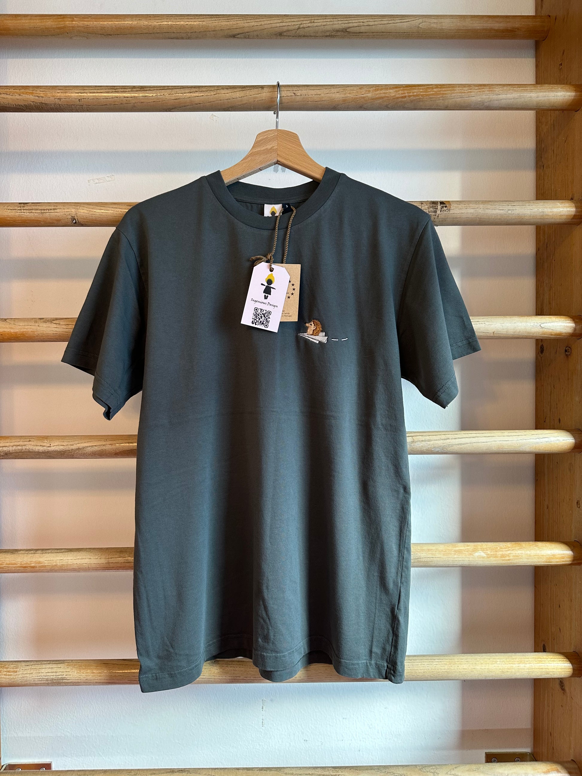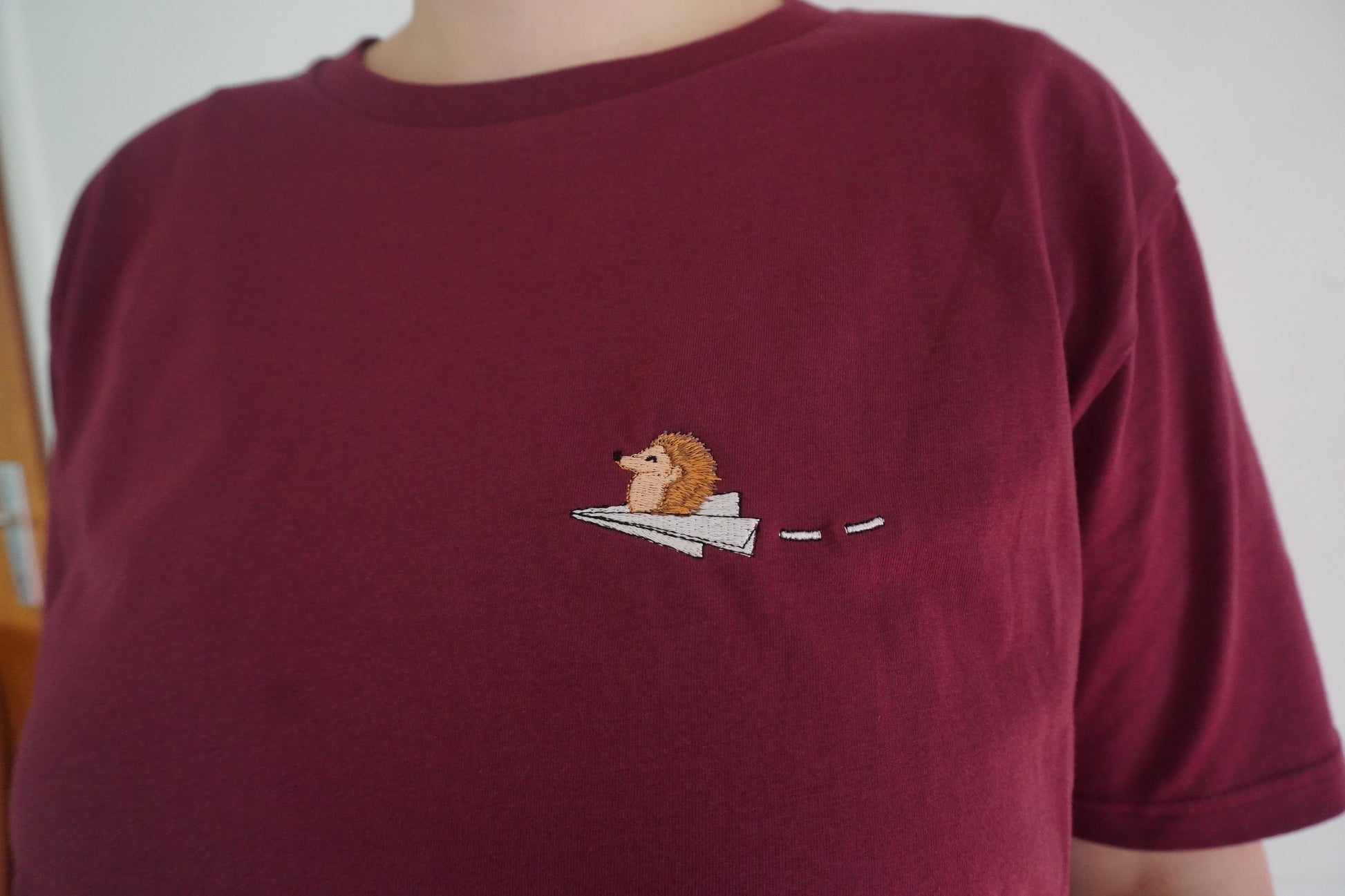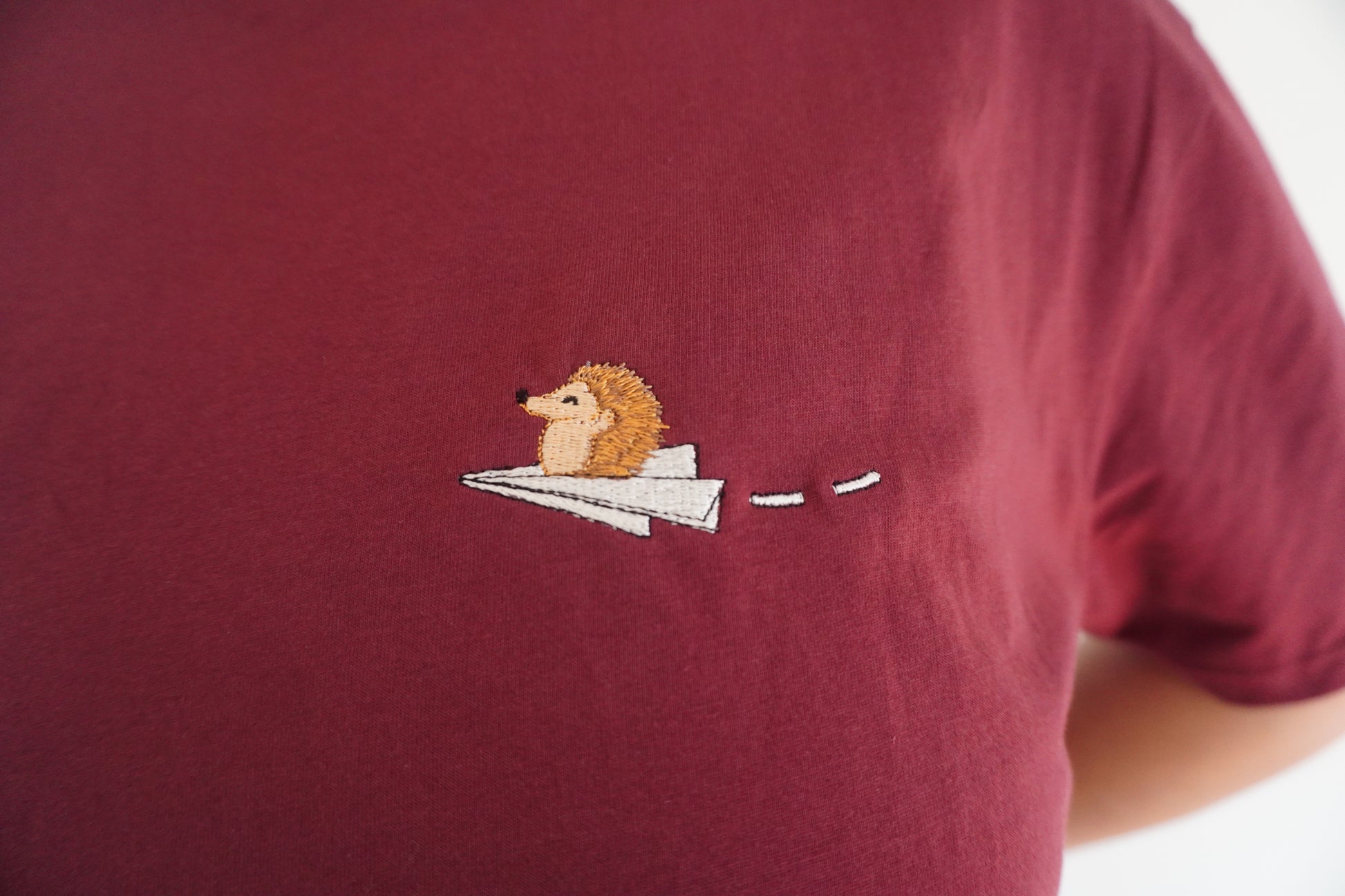 T-Shirt Unisex Bio-Baumwolle bestickt mit Igel auf Papierflieger