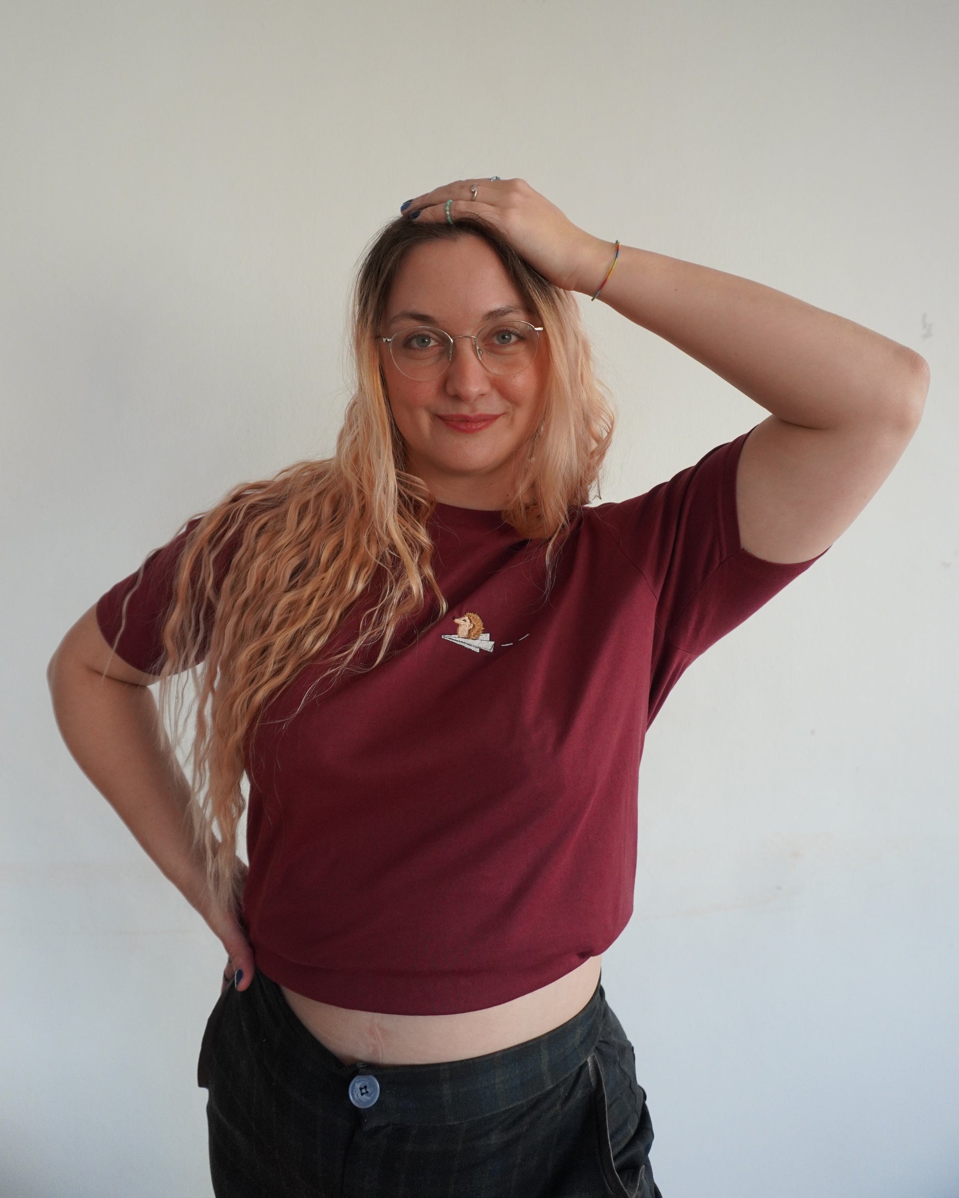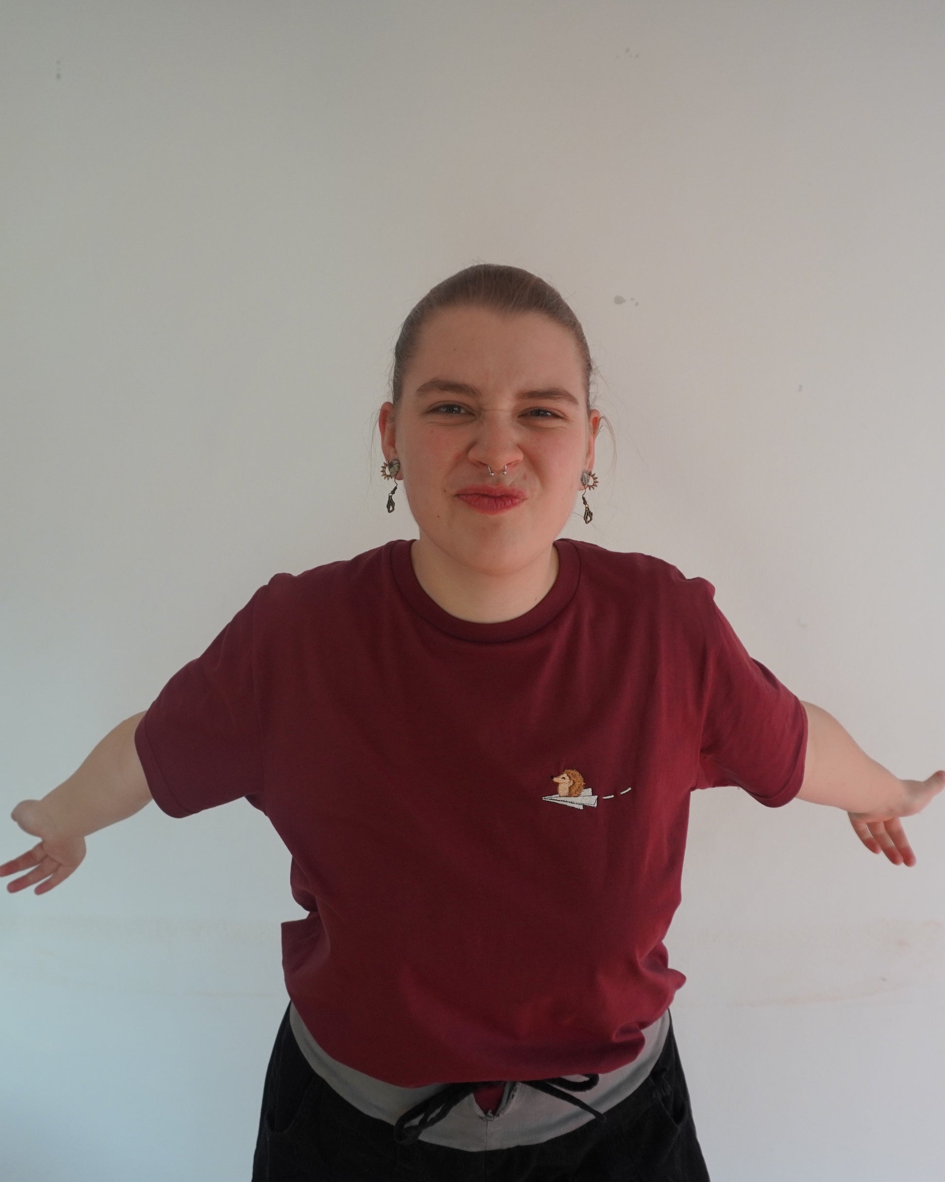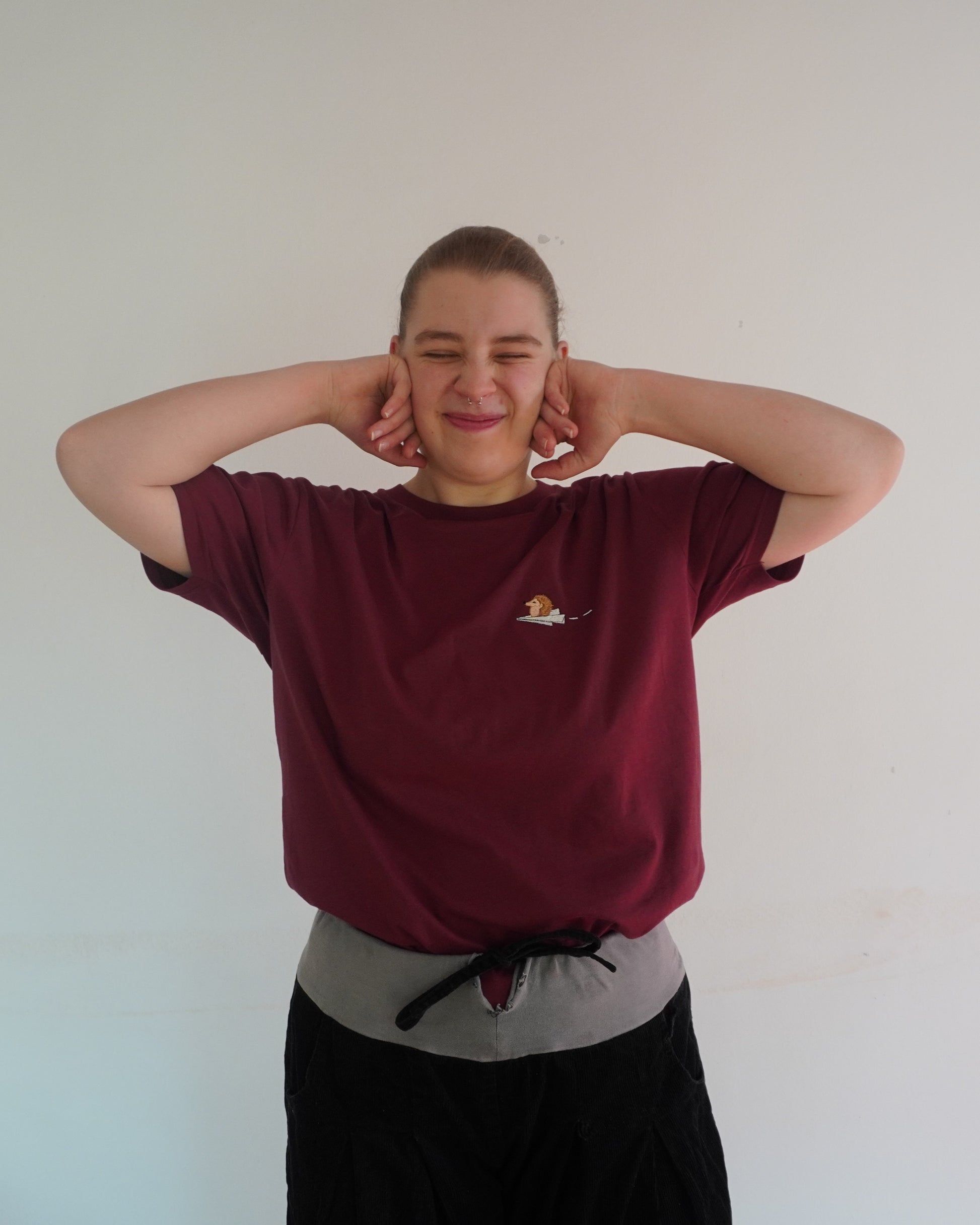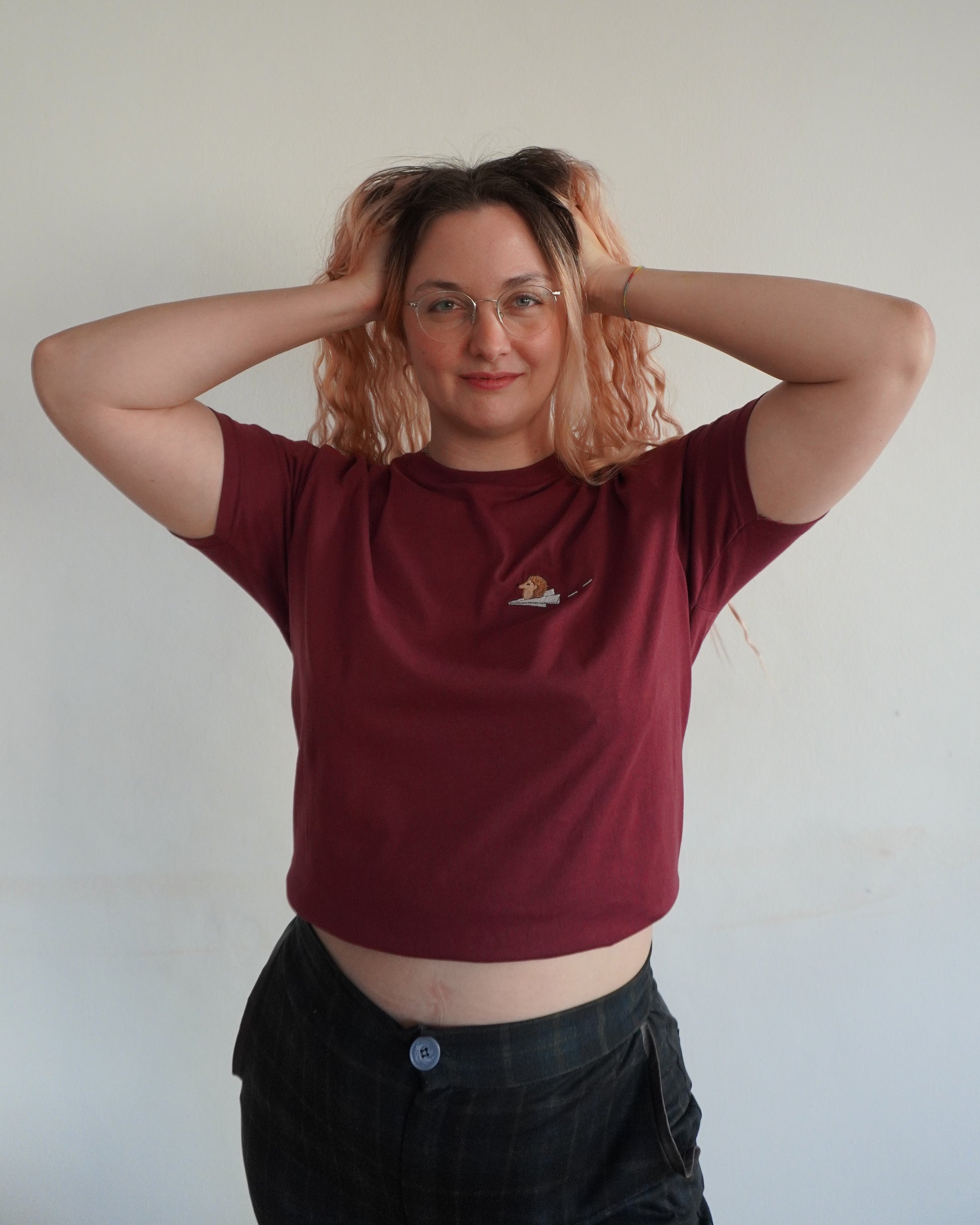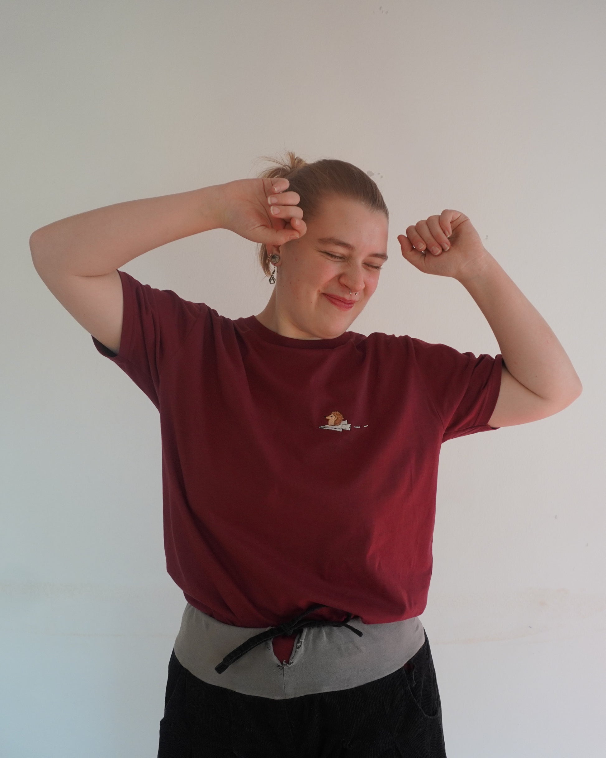 T-Shirt Unisex Bio-Baumwolle bestickt mit Igel auf Papierflieger