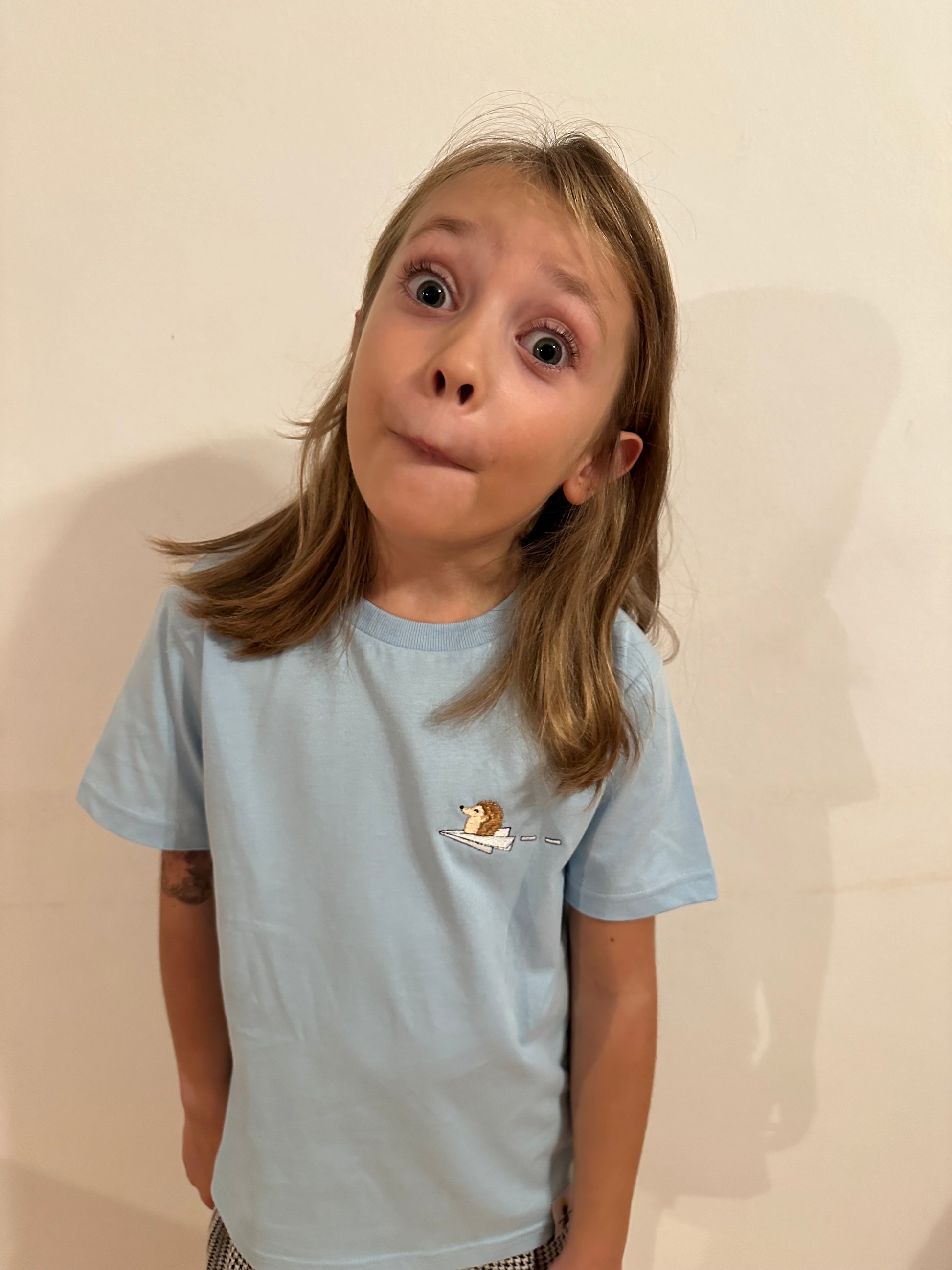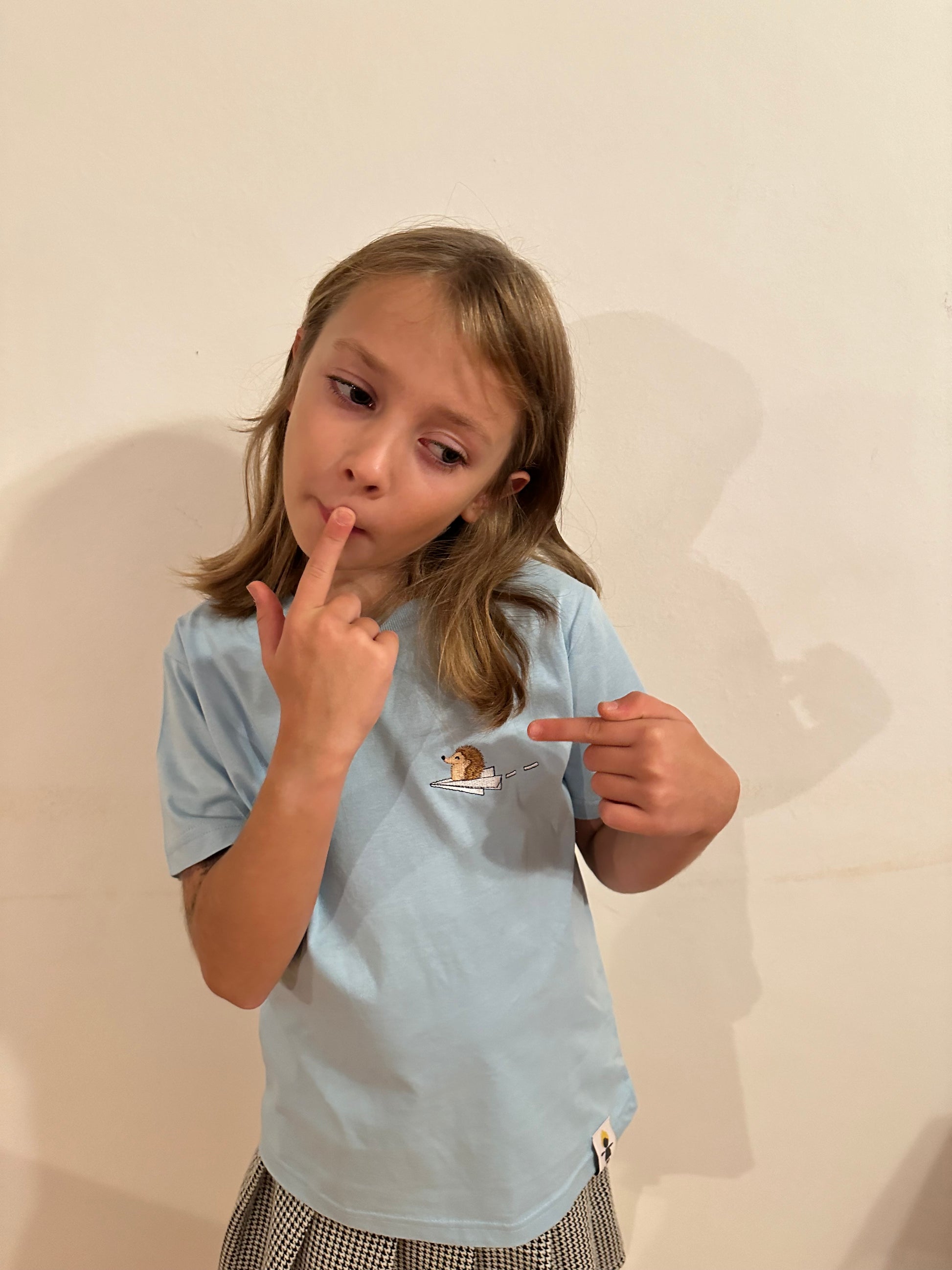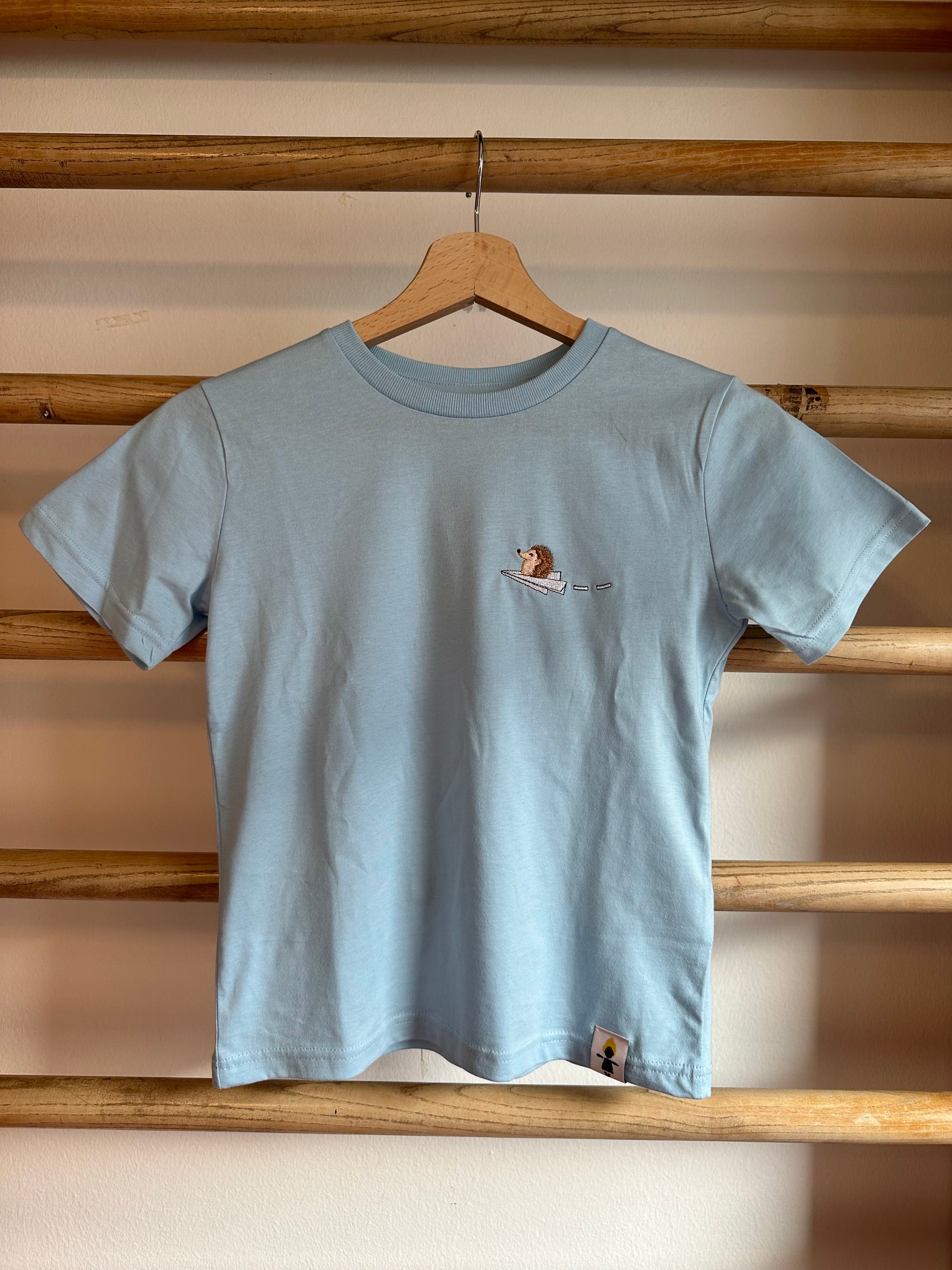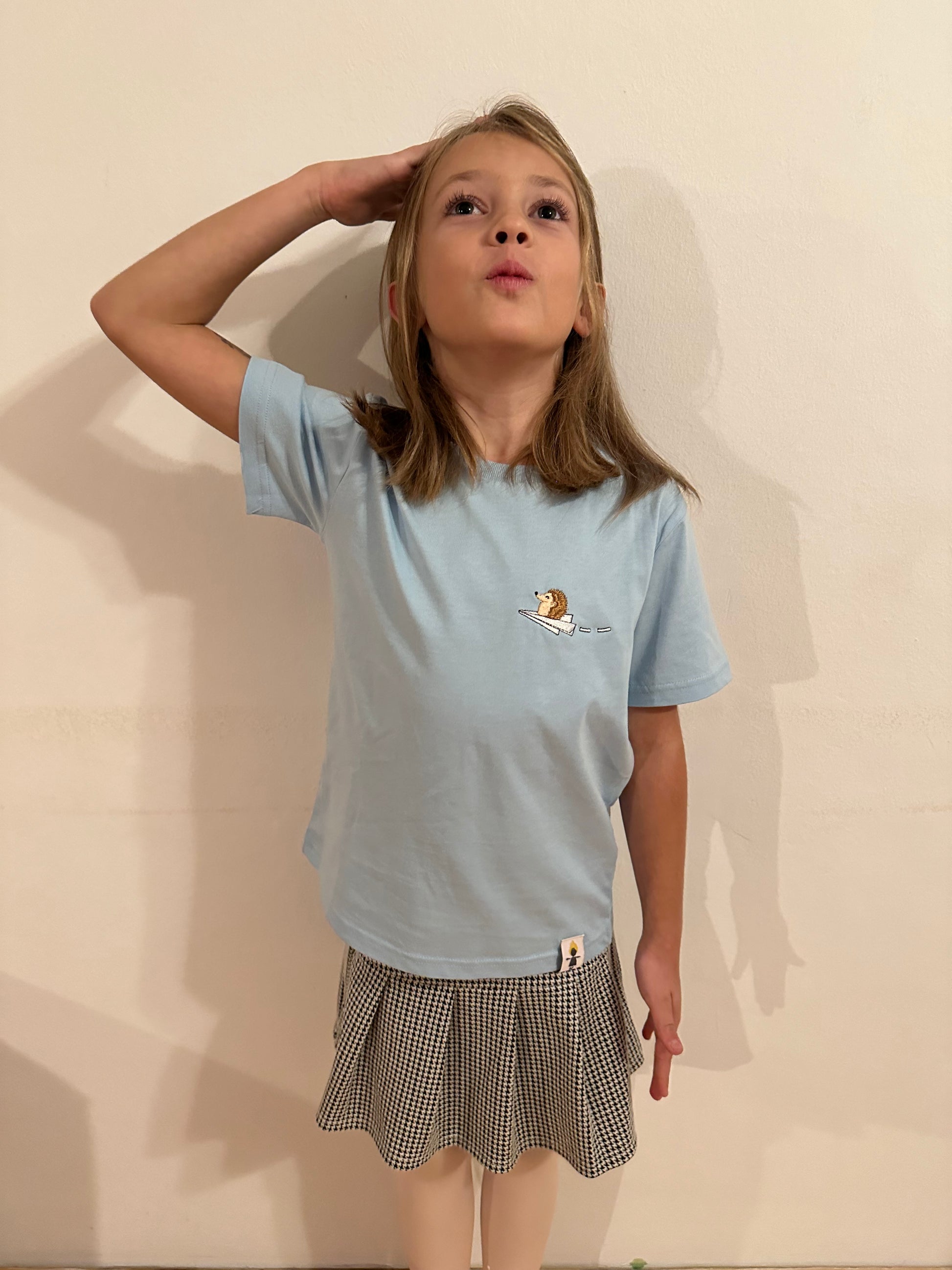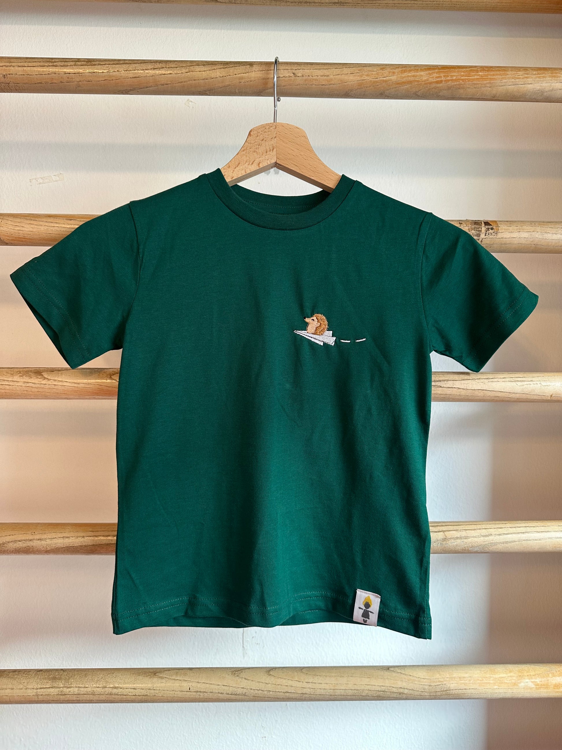 T-Shirt Unisex Bio-Baumwolle bestickt mit Igel auf Papierflieger
