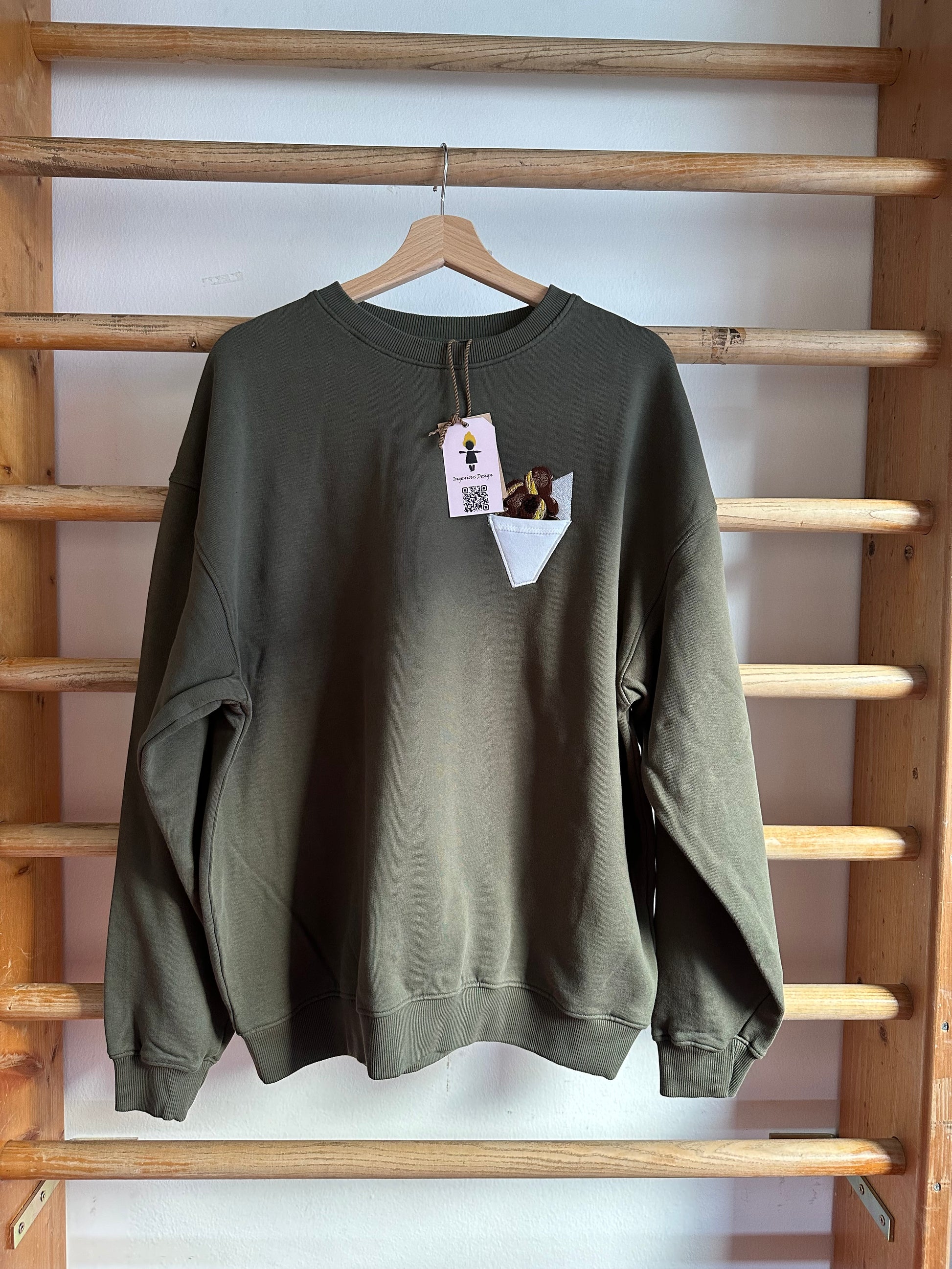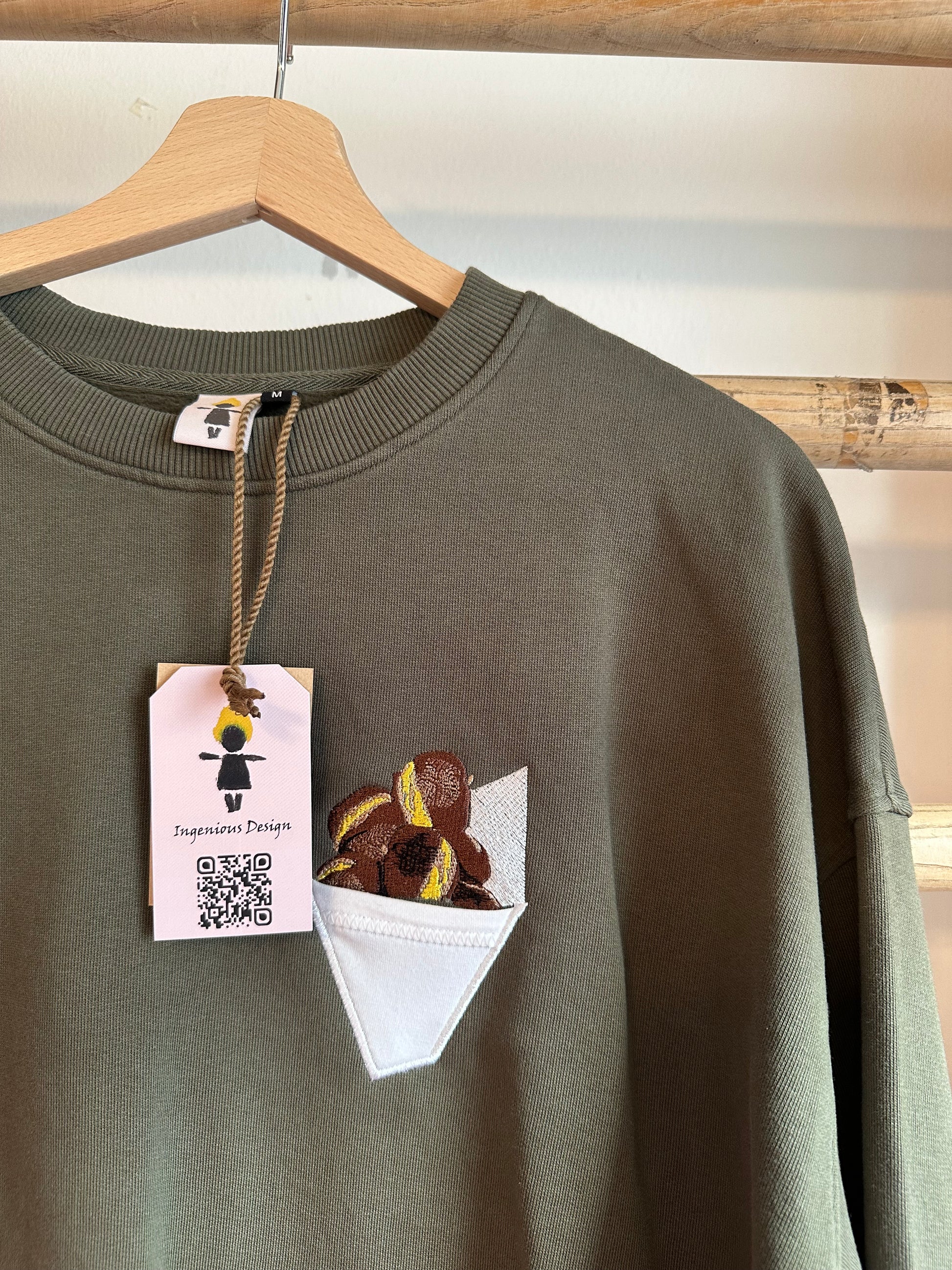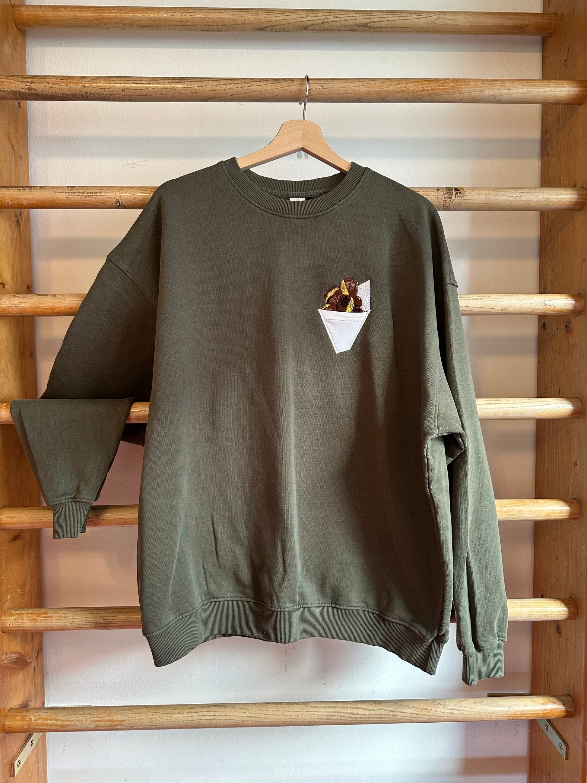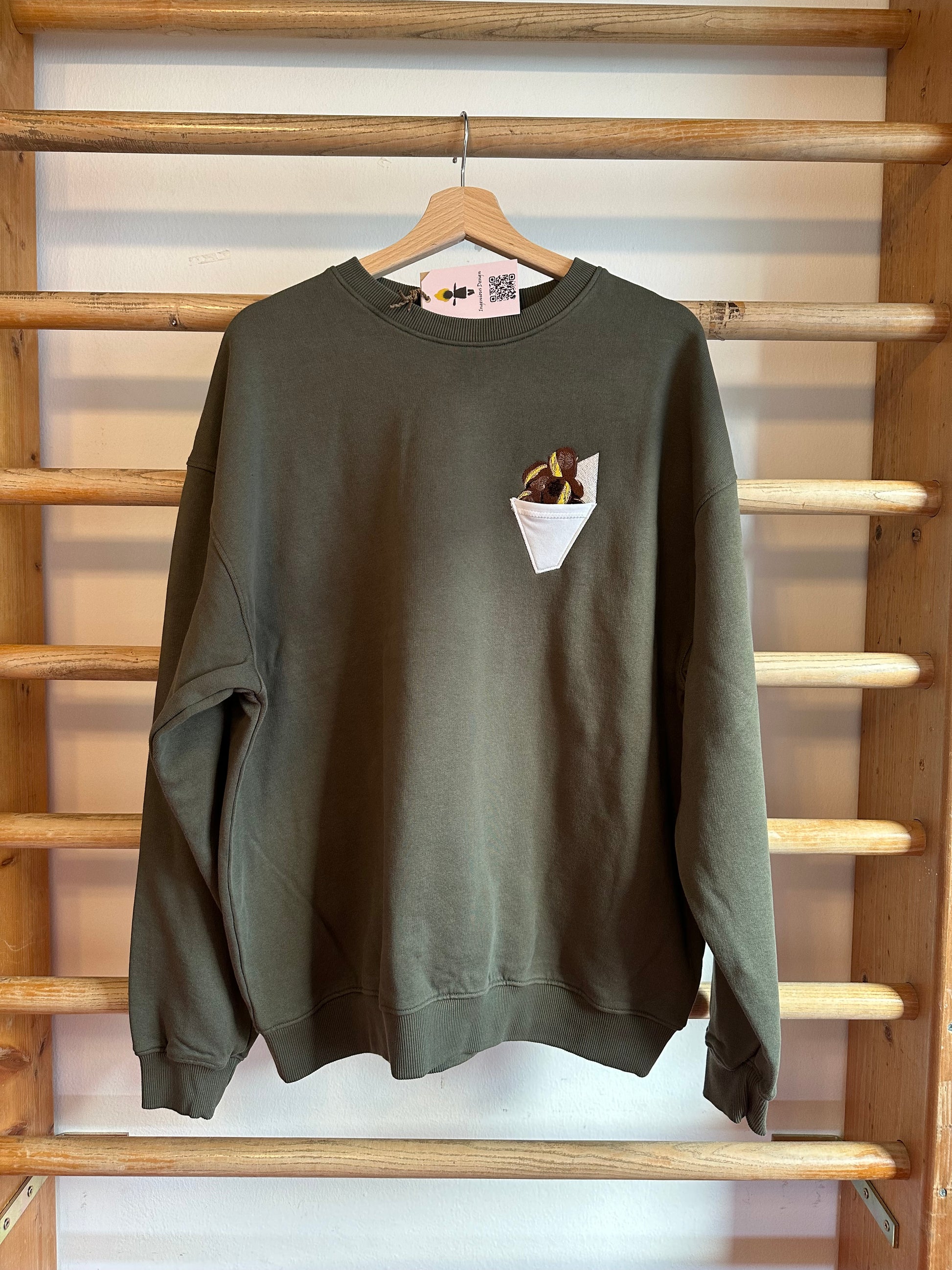 Pullover Unisex Bio-Baumwolle bestickt mit Maronistanizel / Kastanientüte mit Brusttasche