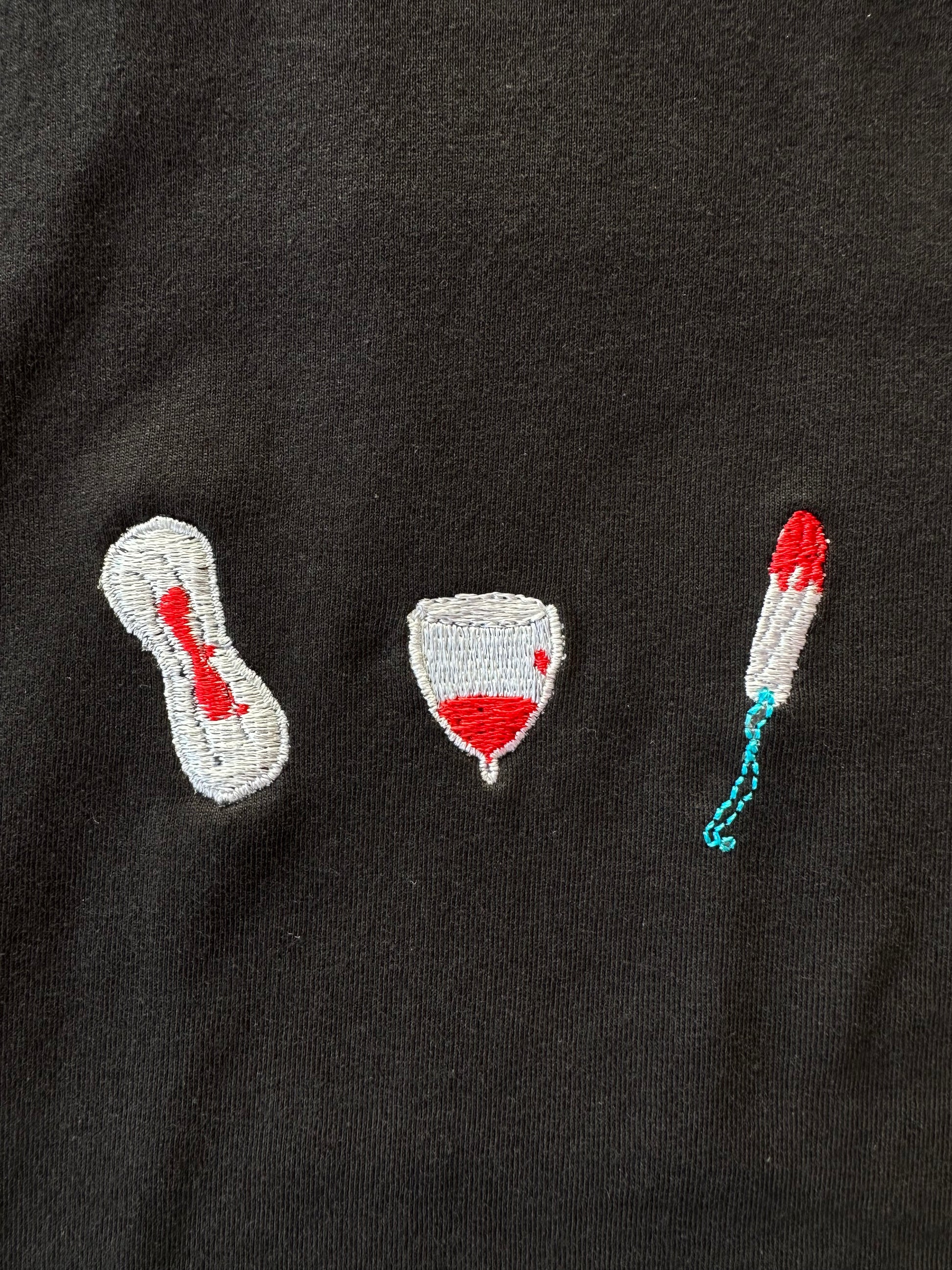 T-Shirt Unisex Bio-Baumwolle bestickt mit Menstruation, Periode, Regelblutung, Menstruationsartikeln Regelblutung Protest Periode Shirt