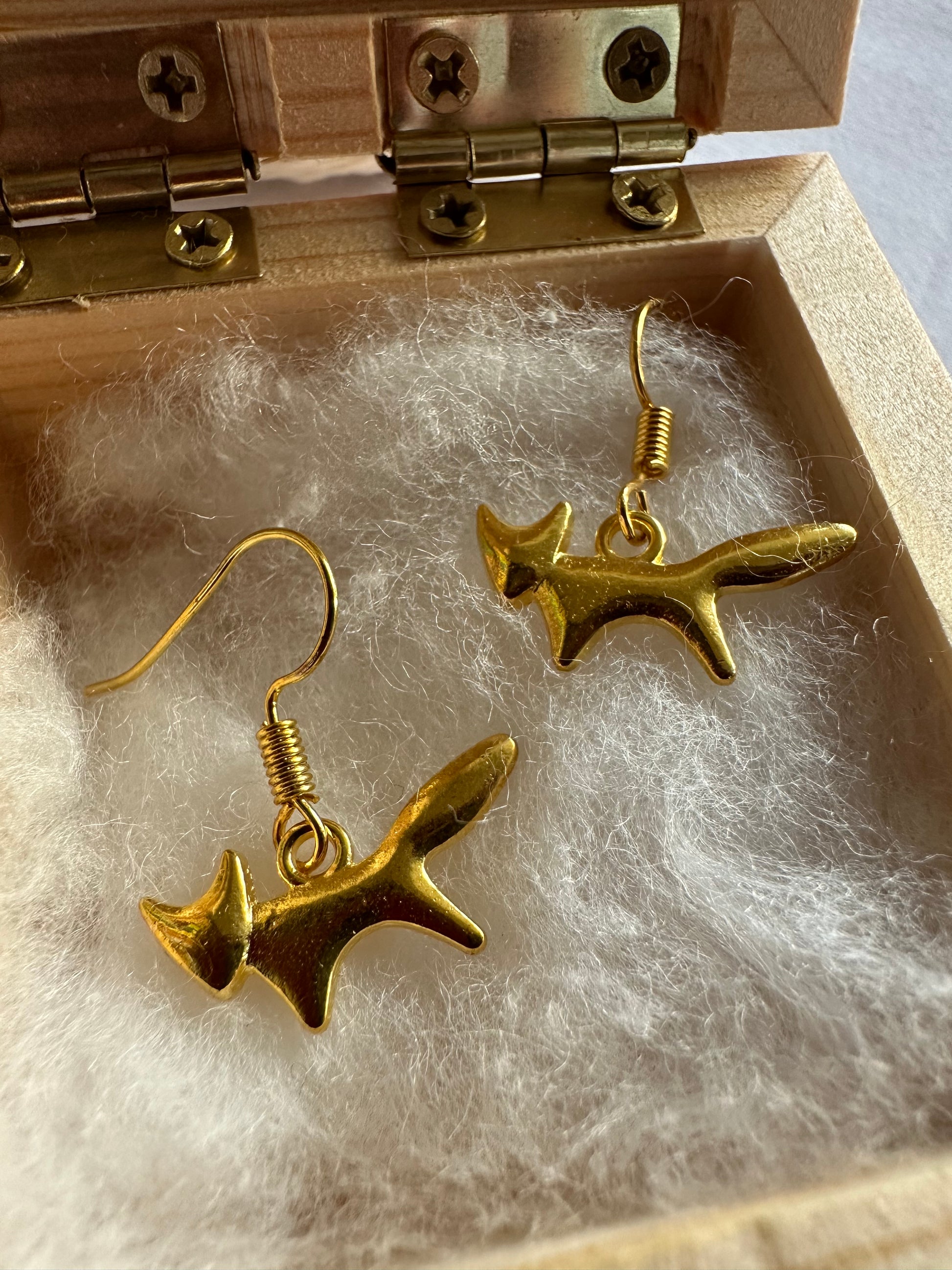 Diese Ohrringe ergänzen das Mut-Fuchs-Shirt oder einfach jedes Outfit egal ob Winter oder Sommer mit zwei goldigen Fuchs-Begleiter*innen.
