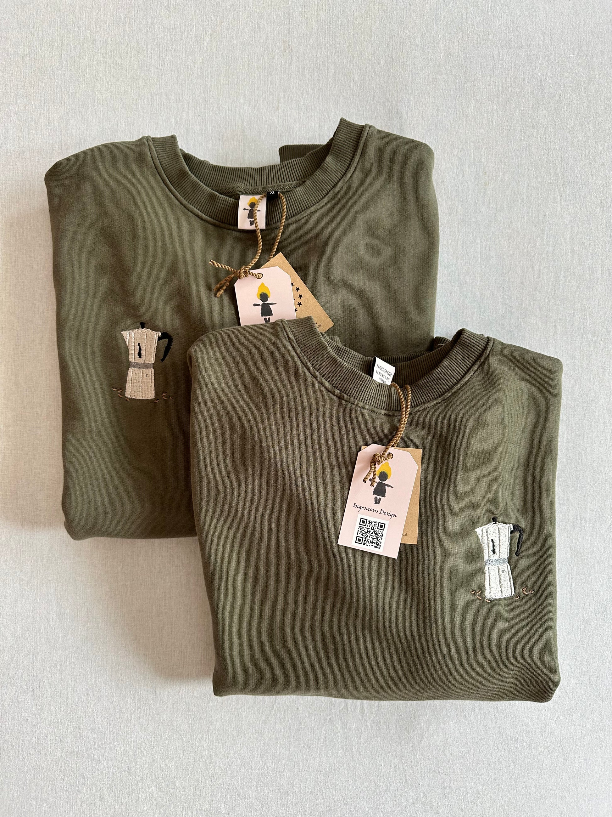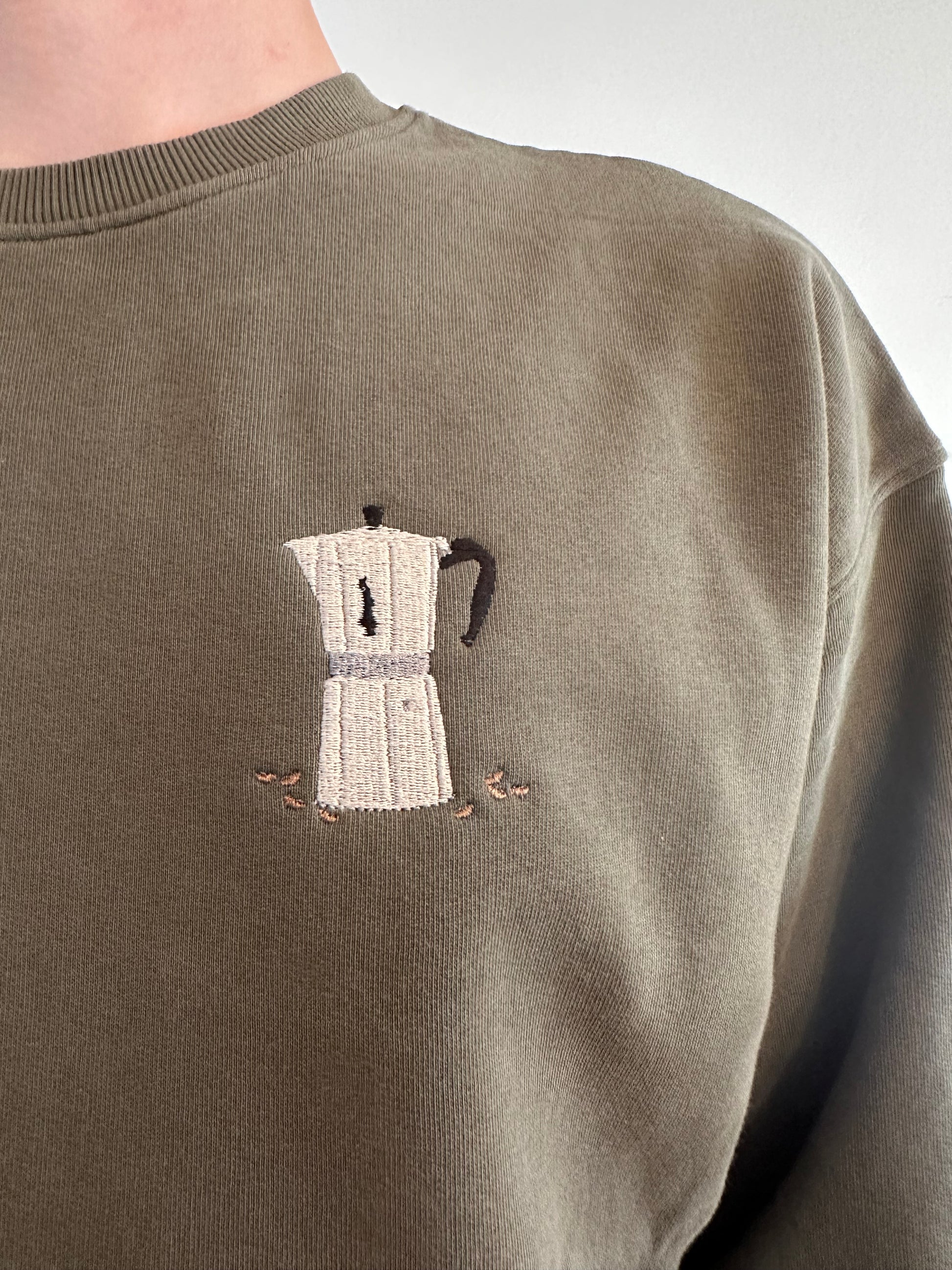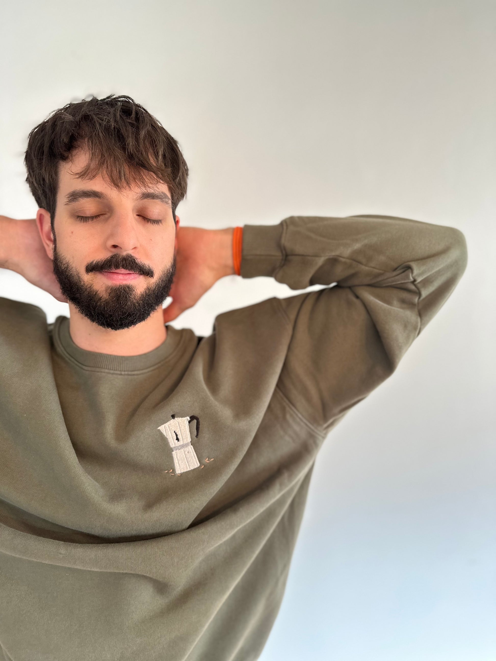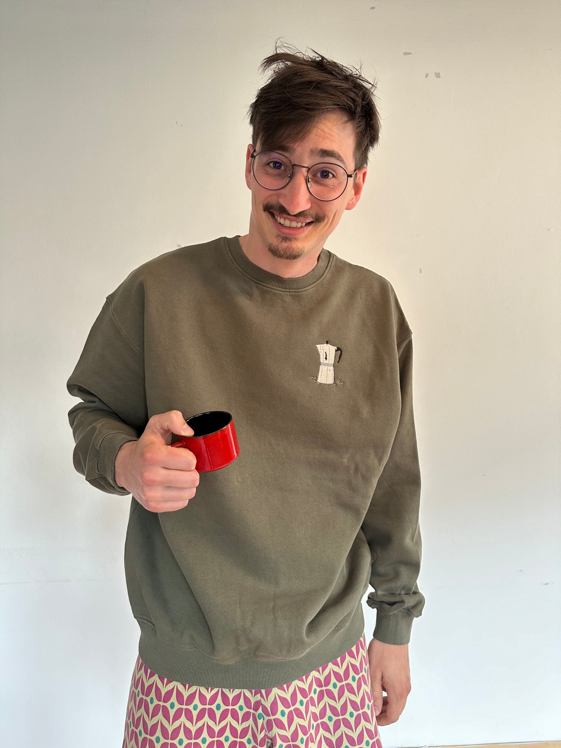 Pullover Unisex Bio-Baumwolle bestickt mit Bialetti Espressokanne