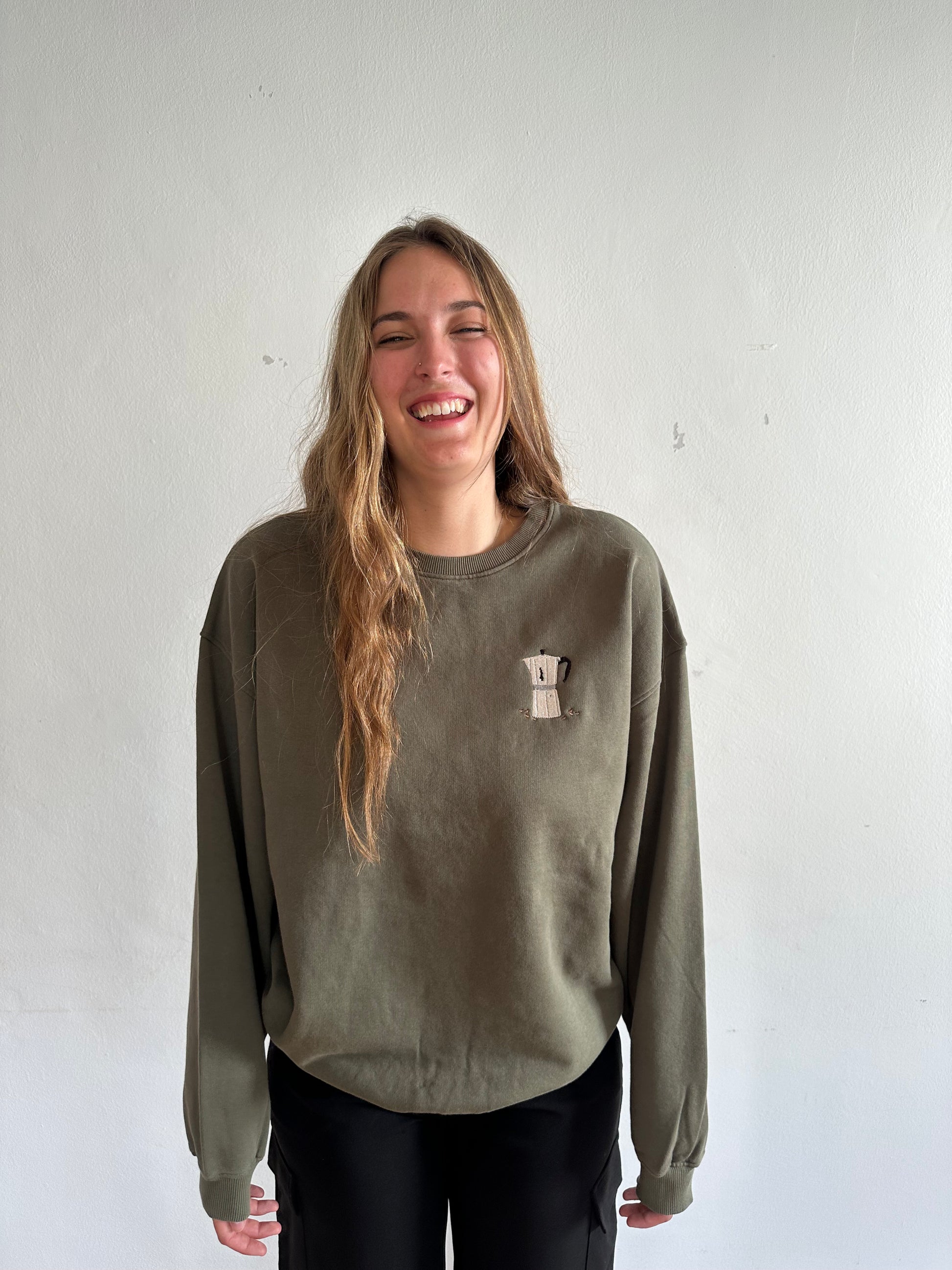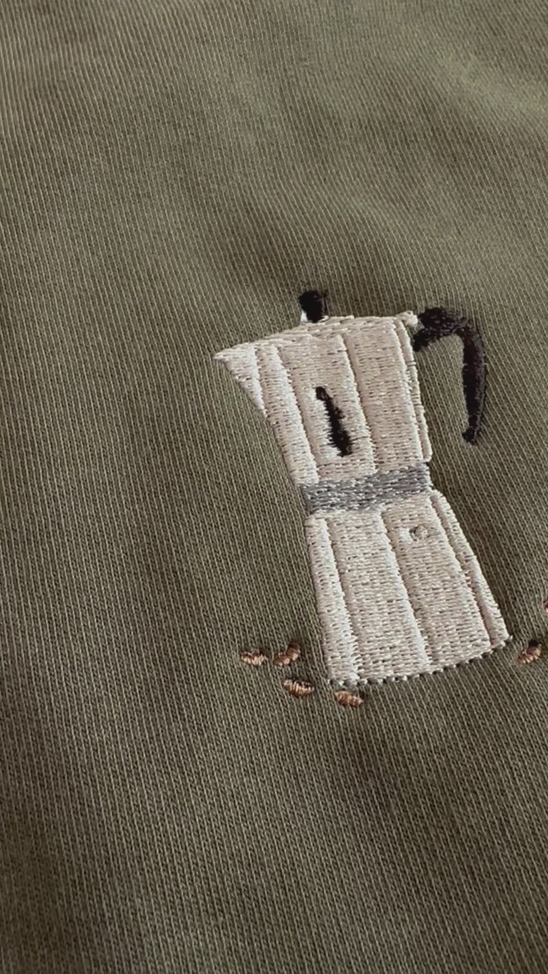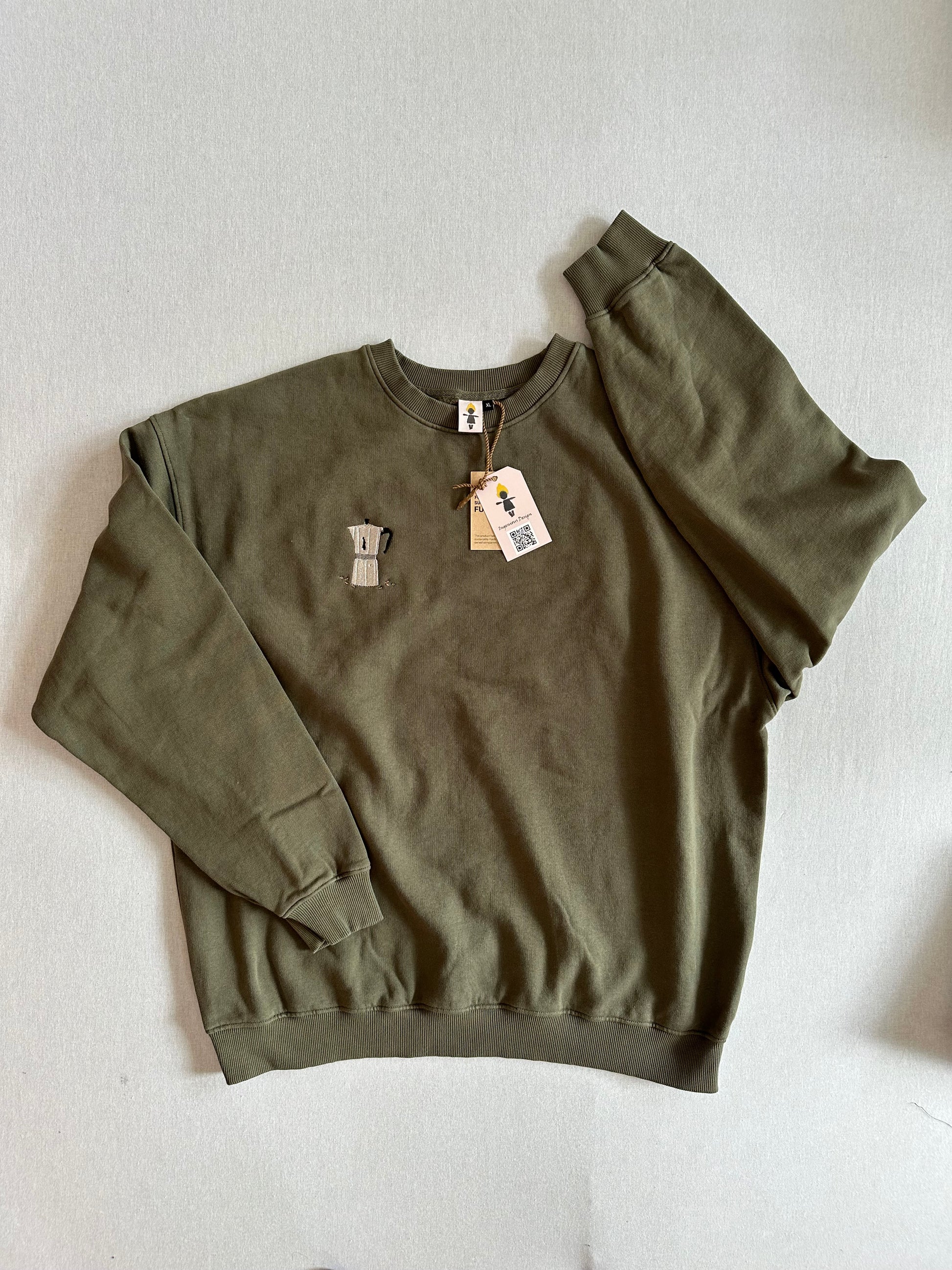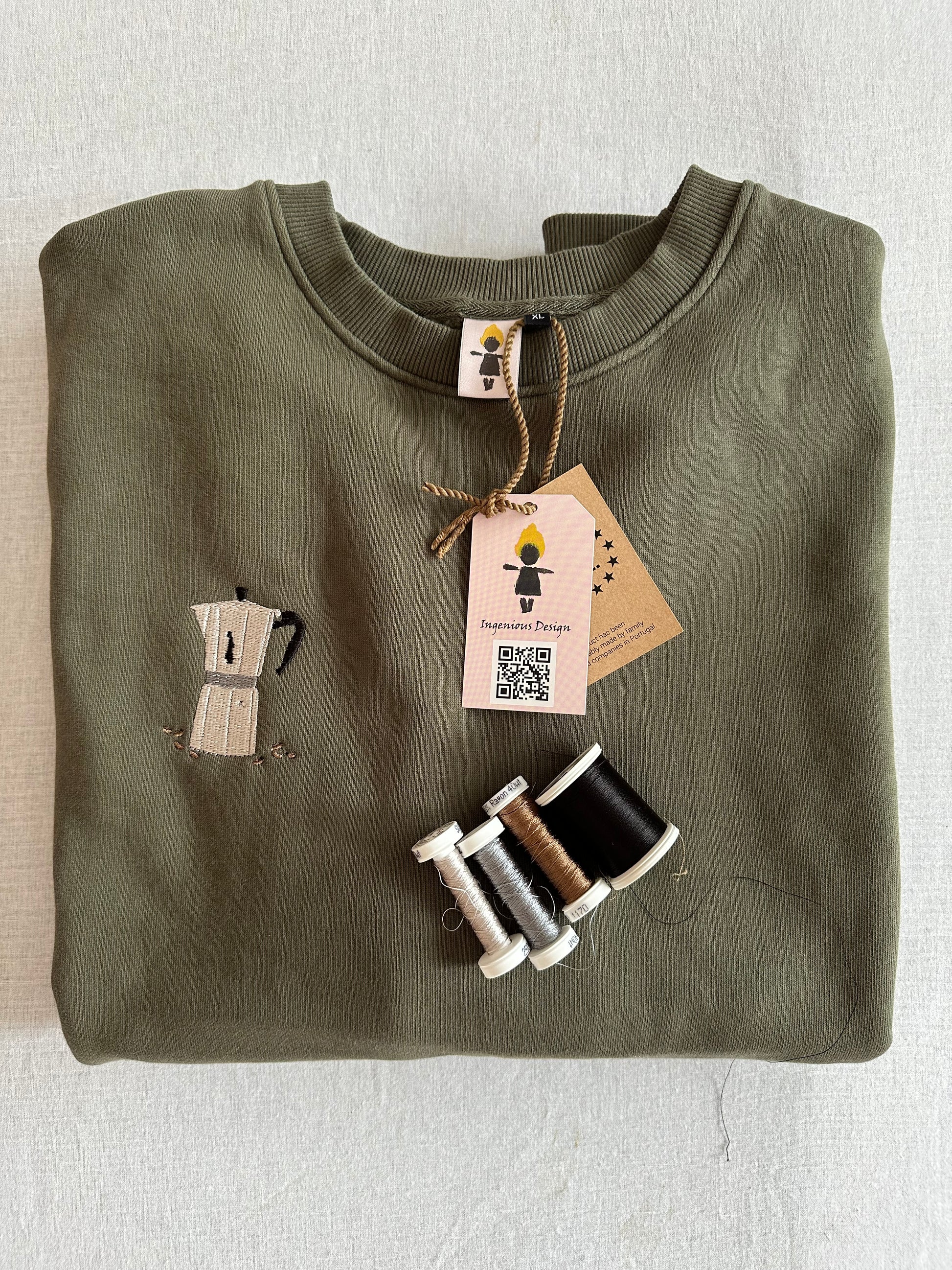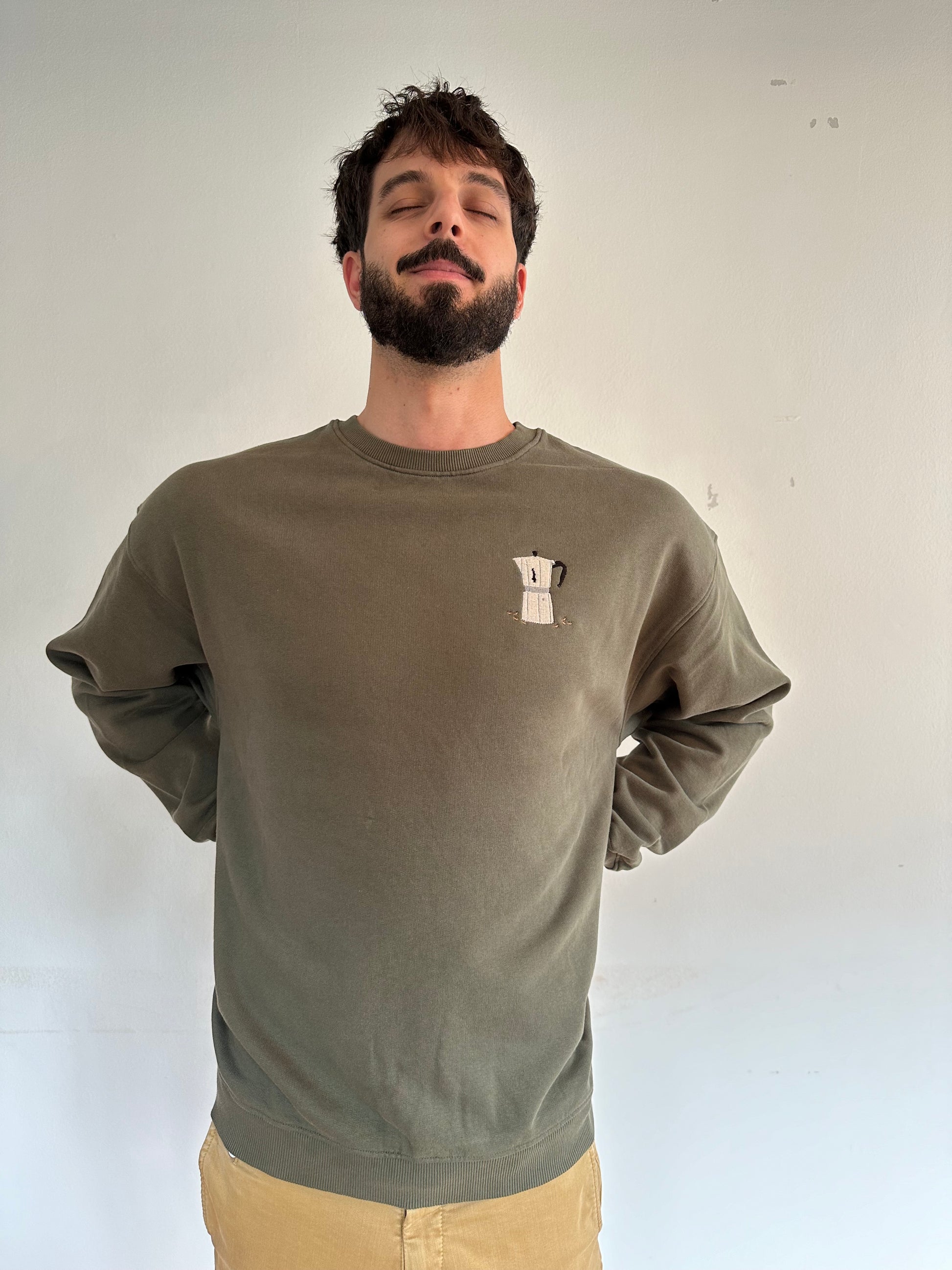 Pullover Unisex Bio-Baumwolle bestickt mit Bialetti Espressokanne
